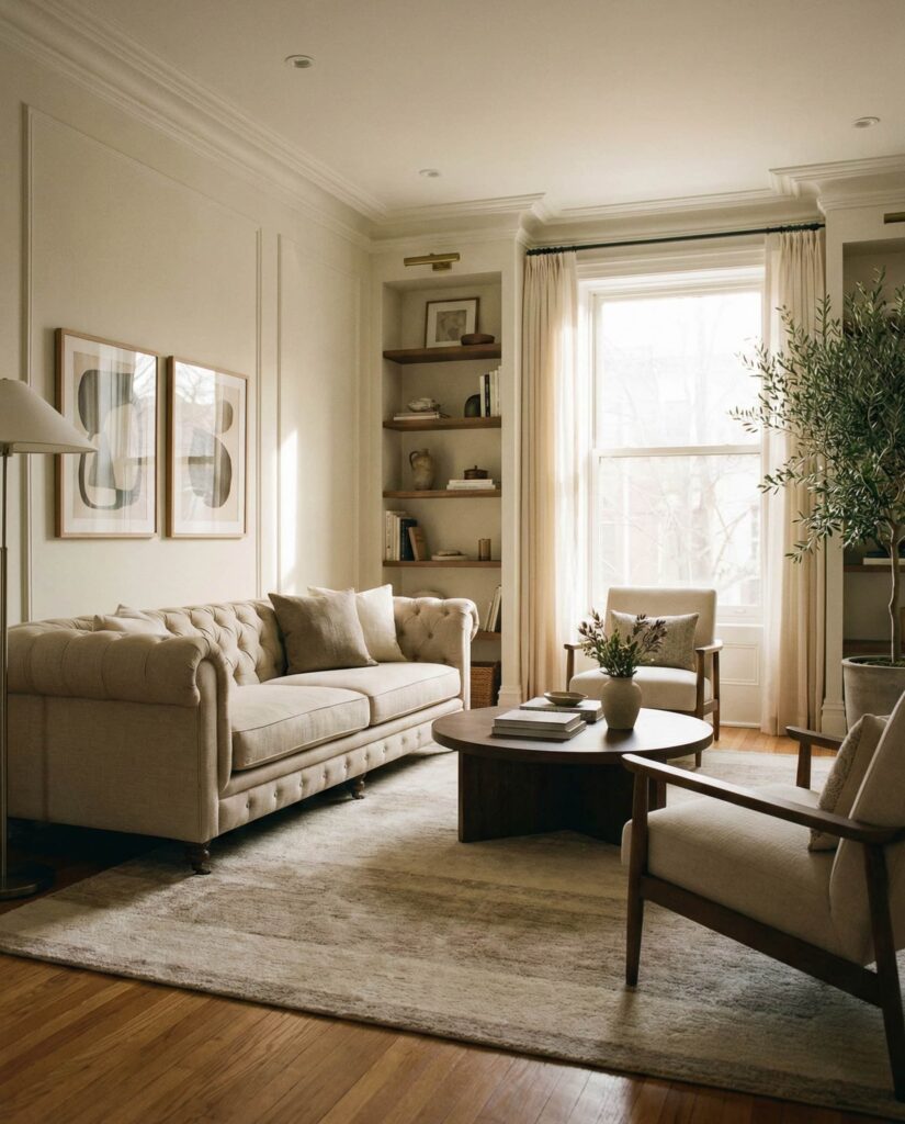 A living room built on warm neutrals prioritizes comfort above all else. Soft creams, warm grays, and gentle browns create an environment that feels instantly welcoming. I’ve seen this palette recommended for busy households because it hides wear while staying visually calm. It’s understated, adaptable, and deeply livable—qualities that continue to define successful living rooms moving forward.