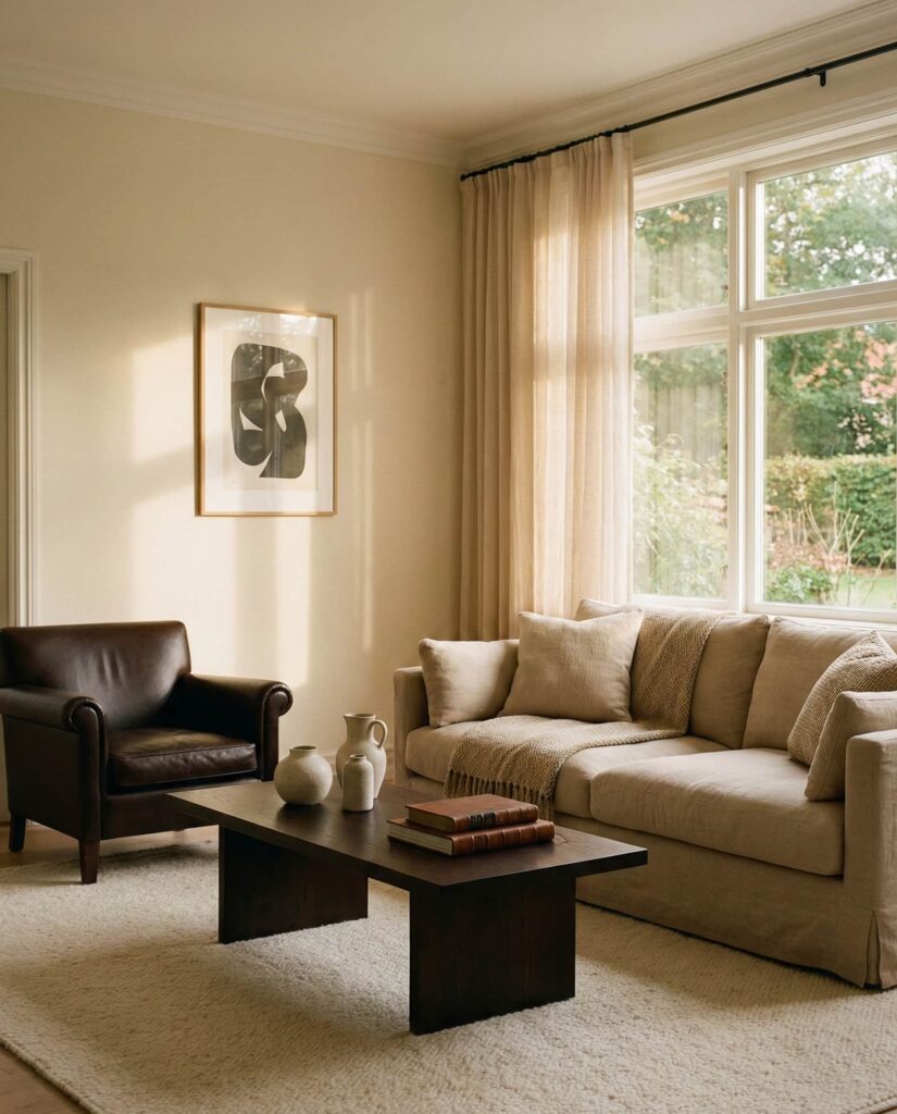An Earthy neutral palette built from layered creams, sands, and soft browns focuses on texture rather than contrast. This style relies on materials—linen, wool, wood—to create interest. I’ve seen this approach favored by designers who emphasize comfort over visual drama. It works particularly well in open-plan homes where continuity matters. The result feels grounded, timeless, and quietly luxurious without feeling styled.