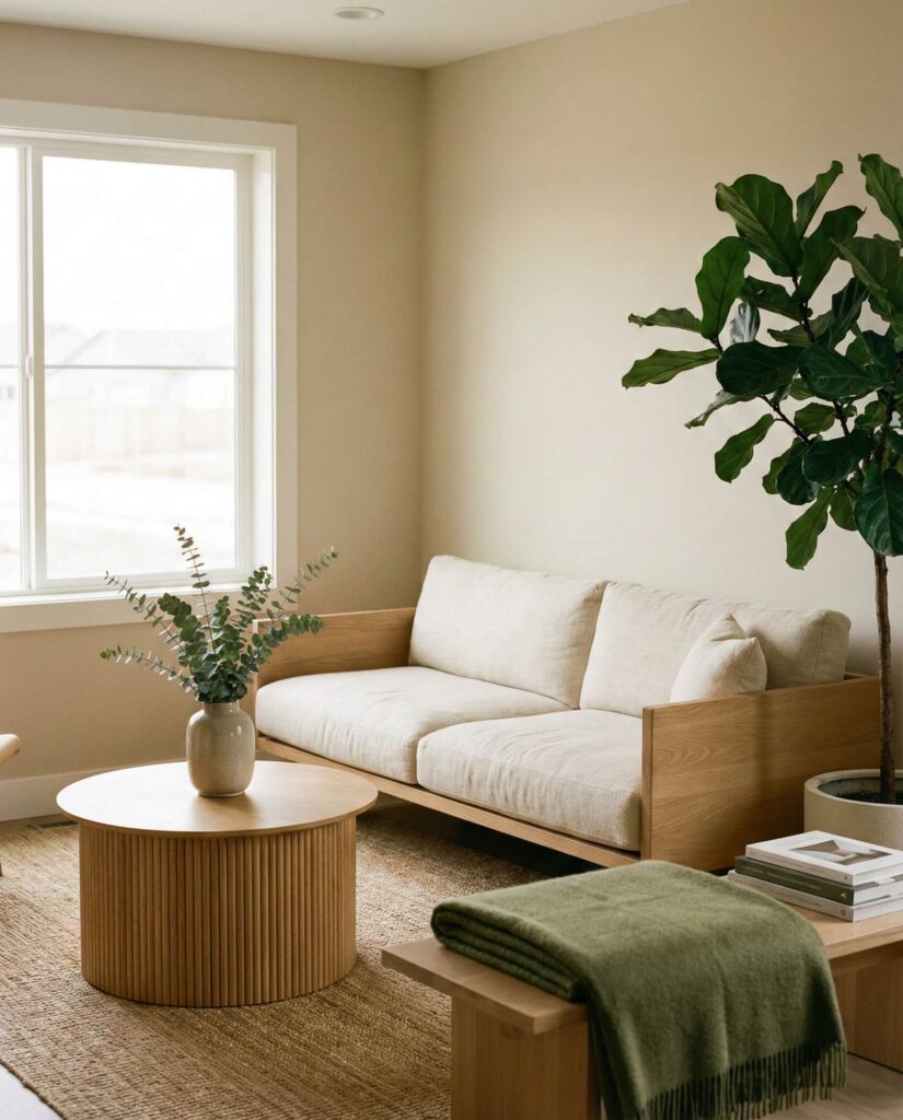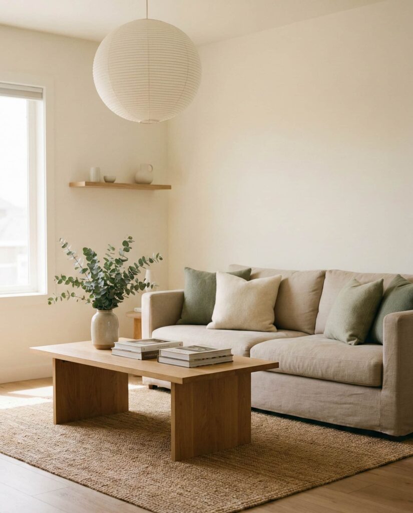 6. Japandi Neutrals with Green Accents