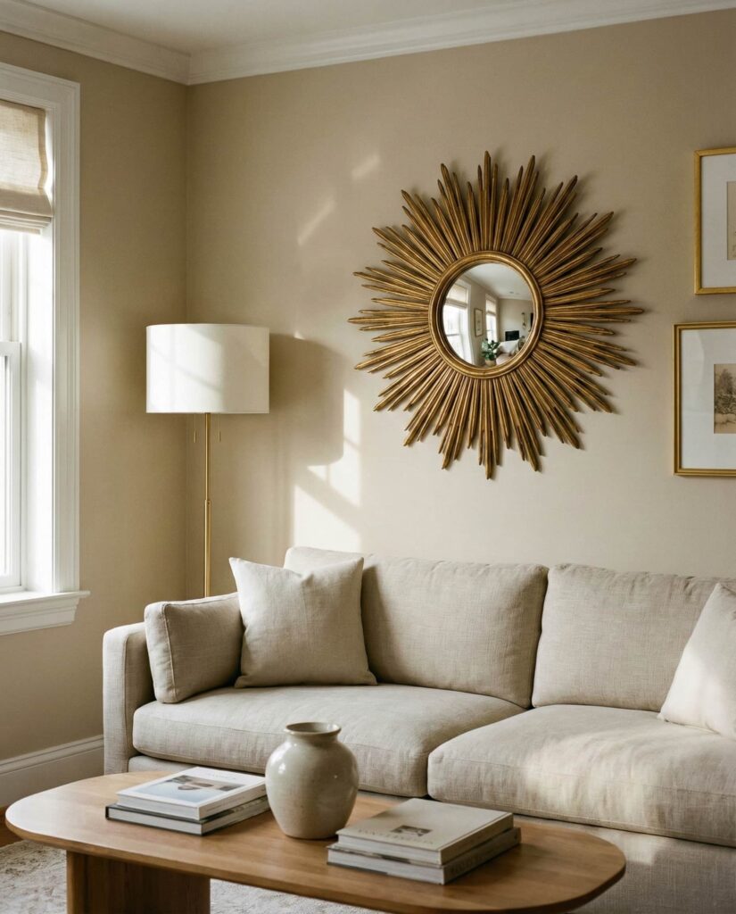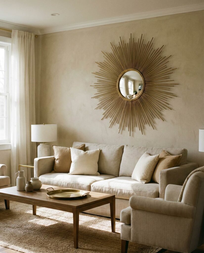 In many Living room settings, sunburst mirrors are reclaiming their place with a modern edge. Rooted in Vintage design, these mirrors radiate outward like a stylized Sun, creating instant focus above a sofa or mantel. I’ve seen homeowners choose brushed Gold finishes to add warmth without overpowering the space. This style works especially well when you want a Full visual impact with minimal furniture changes. Designers often recommend pairing a sunburst mirror with neutral walls so the form stands out naturally. It’s a reminder that one well-chosen piece can transform a room’s entire energy while still feeling timeless and approachable.