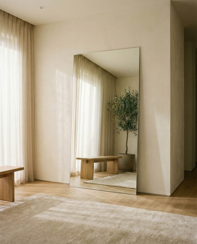 A Full-length mirror is no longer confined to closets or hallways; in 2026 it often becomes an architectural accent. Leaned against a wall in a Living room or placed thoughtfully in an Entrance, it visually stretches ceilings and brightens darker corners. I’ve noticed designers recommending slim frames in matte black or muted Gold to keep the look refined. This approach works particularly well in apartments where every visual trick counts. Beyond practicality, a tall mirror adds rhythm and vertical balance, subtly elevating the entire Room aesthetic without demanding additional décor.
