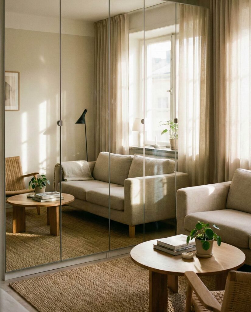 13. Mirrored Panels for Small Living Rooms