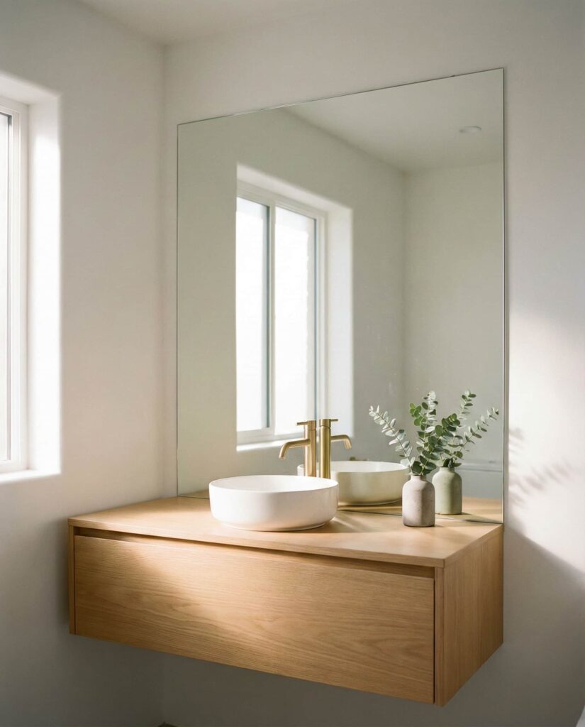 Large mirrors above vanities redefine the Bathroom as a design-focused space. Whether frameless or accented in Gold, these mirrors amplify light and simplify the room visually. I’ve noticed homeowners choosing oversized designs to replace traditional cabinets. The result feels open, calm, and easy to maintain, aligning with modern lifestyle priorities.