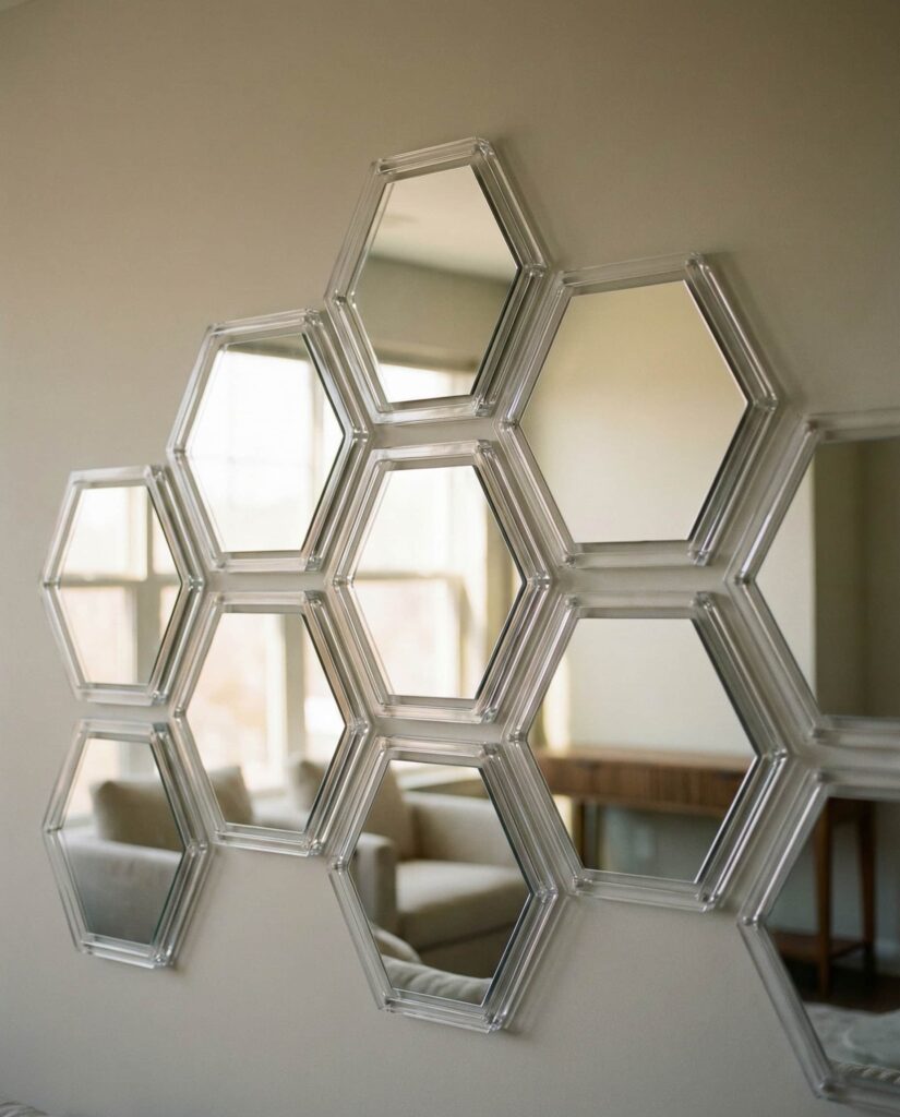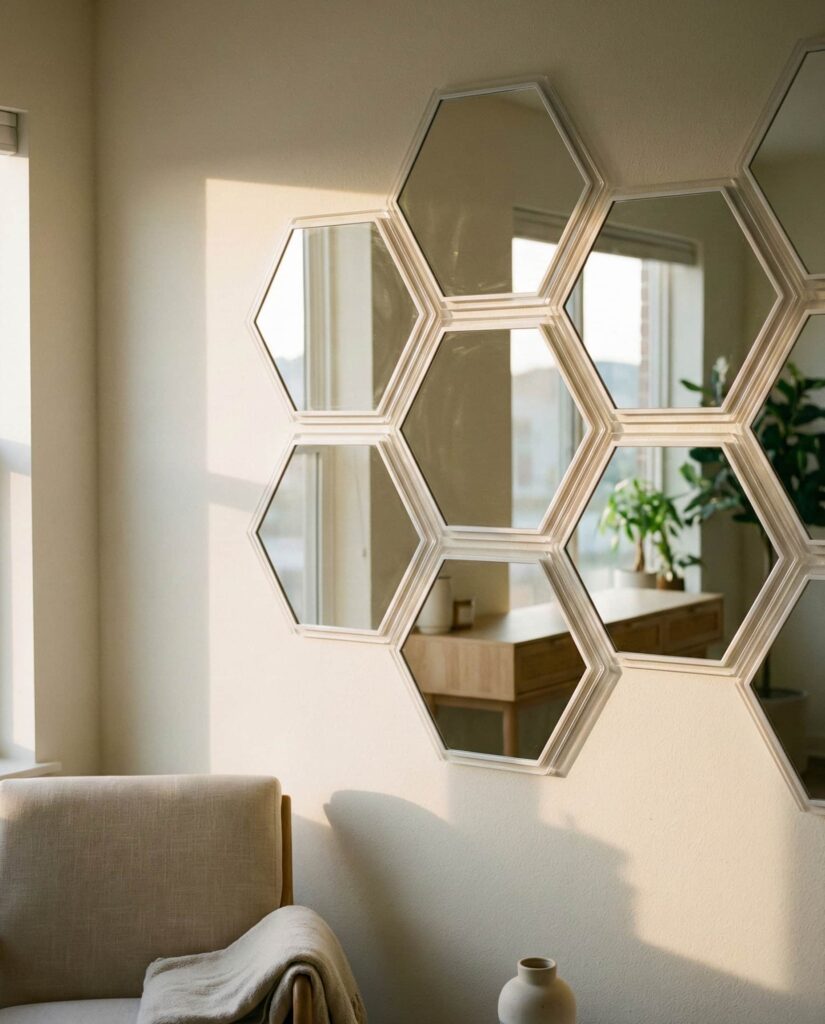 The popularity of Hexagon mirrors continues into 2026, especially in Living room ideas small spaces simple layouts. These modular shapes often resemble a Honeycomb, making them ideal for creating rhythm without clutter. I’ve noticed friends using lightweight Acrylic versions for easy installation, turning it into a casual Diy weekend project. When arranged thoughtfully, hexagon mirrors bounce light across the wall, enhancing a Room aesthetic that feels modern but not cold. Interior bloggers from Apartment Therapy frequently praise this look for renters who want impact without permanence.