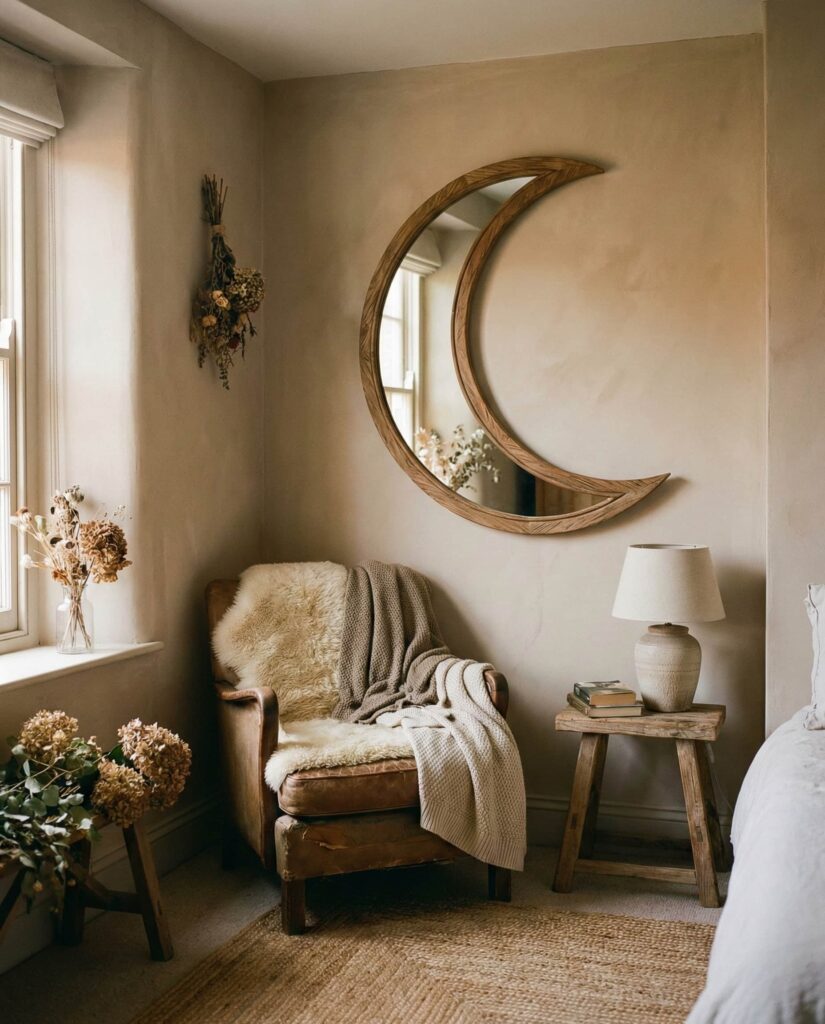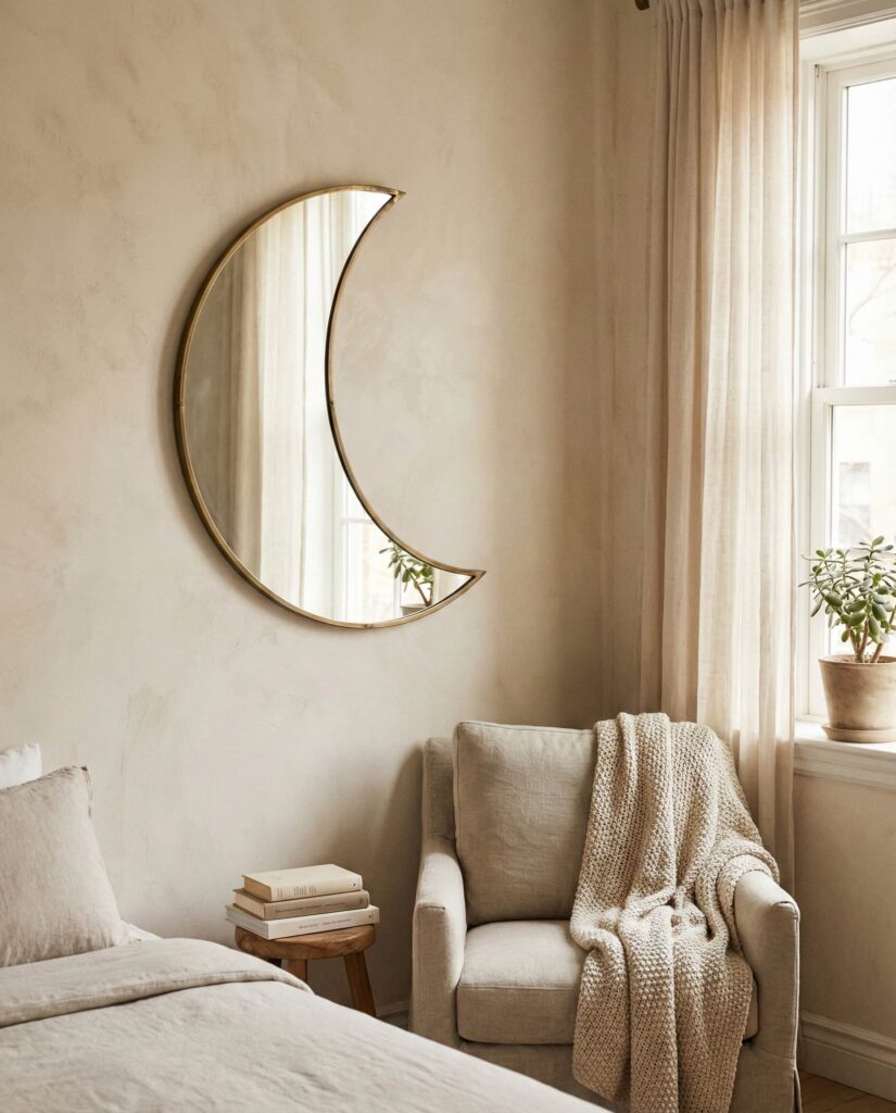 Crescent-shaped mirrors inspired by the Moon are emerging as a thoughtful accent for restful interiors, especially within Bedroom ideas that focus on calm and reflection. This style works beautifully in reading nooks or empty corners where traditional art feels too static. I’ve noticed designers using slim metallic finishes, often muted Gold, to give the mirror presence without overpowering the space. The curved silhouette softens straight furniture lines and enhances the overall Room aesthetic, making the bedroom feel more personal and serene. Unlike bold statement pieces, moon mirrors invite a pause, encouraging slower mornings and quieter evenings, which feels especially relevant as homes continue to double as places of retreat.