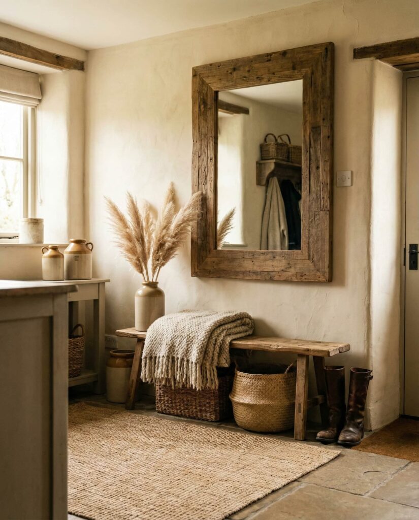 For fans of Farmhouse interiors, mirrors framed in distressed Wooden textures remain essential. These pieces often work best in an Entrance, where they offer both function and charm. I’ve seen reclaimed wood frames bring authenticity that new materials struggle to match. This style pairs beautifully with simple benches and woven baskets, grounding the home in warmth. It’s a reminder that mirrors don’t need to be sleek to feel current; character still matters.