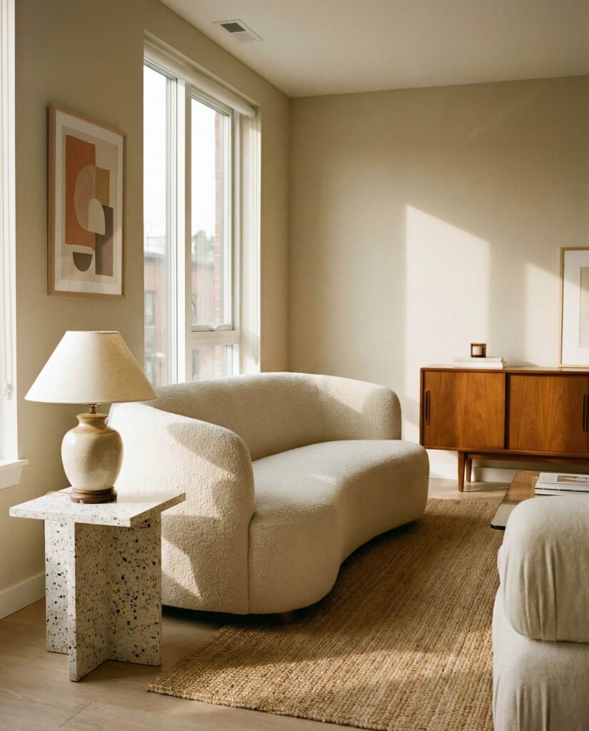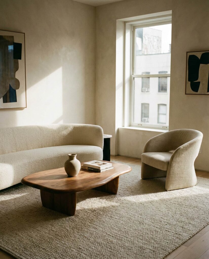 Modern living rooms are increasingly shaped around sculptural furniture that feels closer to art than utility. This approach, often discussed on Dezeen and Architectural Digest, uses bold silhouettes inspired by Mid century and Midcentury traditions, softened with Organic curves. A statement sofa or asymmetrical armchair anchors the Interior, allowing the rest of the Decor to remain understated. These pieces bring Inspiration without overwhelming the room, especially when paired with Natural fabrics and muted tones. Homeowners appreciate how sculptural forms add personality while still supporting everyday comfort. In many homes, this idea replaces excessive accessories, letting form and material speak for themselves in a calm, confident way.