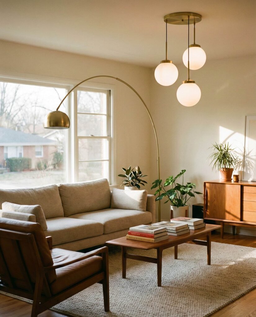 Lighting is becoming more expressive, with Retro-inspired fixtures taking center stage. Globe pendants, arc lamps, or brass sconces reference Midcentury aesthetics while fitting modern needs. Designers from Dwell emphasize how bold lighting can replace excessive Decor. When paired with neutral Designs, these fixtures add personality without overwhelming the space. Homeowners appreciate how lighting defines mood and function, especially in multifunctional living rooms used day and night.