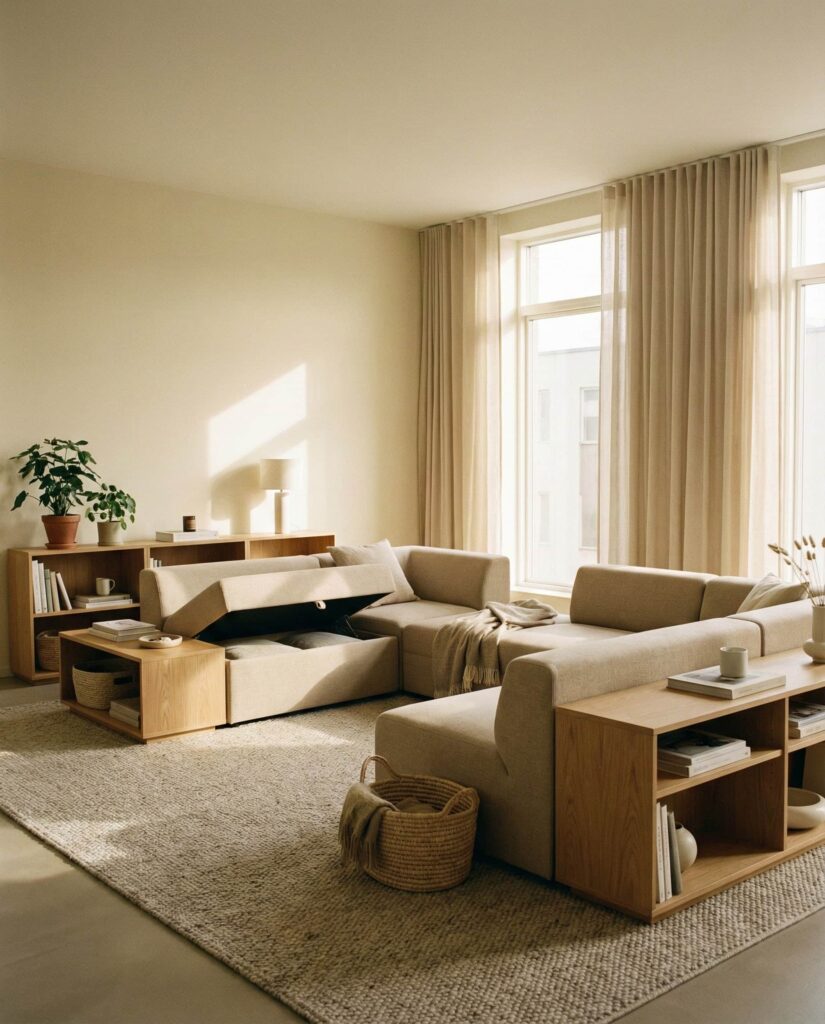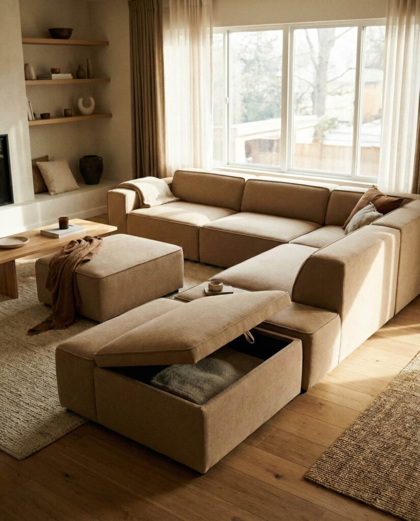 Modern living rooms are increasingly shaped by smart, adaptable furniture designed for real daily routines. This idea focuses on modular sofas, movable tables, and storage-integrated seating that supports changing needs without compromising style. Influenced by Contemporary mid century and updated Mid-century thinking, these Designs combine clean lines with Cozy functionality. Many pieces draw subtle cues from Midcentury and Classic forms while using Natural materials and modern mechanisms. Designers at Dwell and Architectural Digest note that flexibility has become essential as living rooms double as workspaces, media zones, and social hubs. Thoughtful Interior planning, paired with smart Decor and layered lighting, ensures the space feels intentional rather than temporary. This approach offers practical Ideas for homes where comfort, efficiency, and aesthetics must coexist naturally.