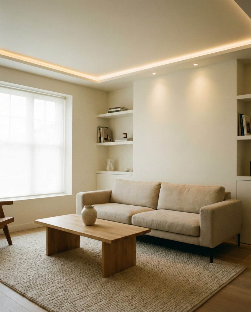 In modern living rooms, lighting ceilings are no longer hidden utilities but intentional architectural features. This idea blends Natural illumination with integrated lighting systems that enhance both mood and structure. Influenced by contemporary projects featured on Dezeen, recessed lights, soft perimeter glows, and subtle ceiling details elevate the Interior without visual clutter. When paired with clean Designs, warm Decor, and carefully chosen furniture, ceiling lighting creates depth and balance throughout the space. Homeowners increasingly favor this solution because it adapts easily from daytime brightness to evening comfort. It also supports open layouts where the living room flows into dining or kitchen areas, proving that smart lighting can define zones gently rather than aggressively.