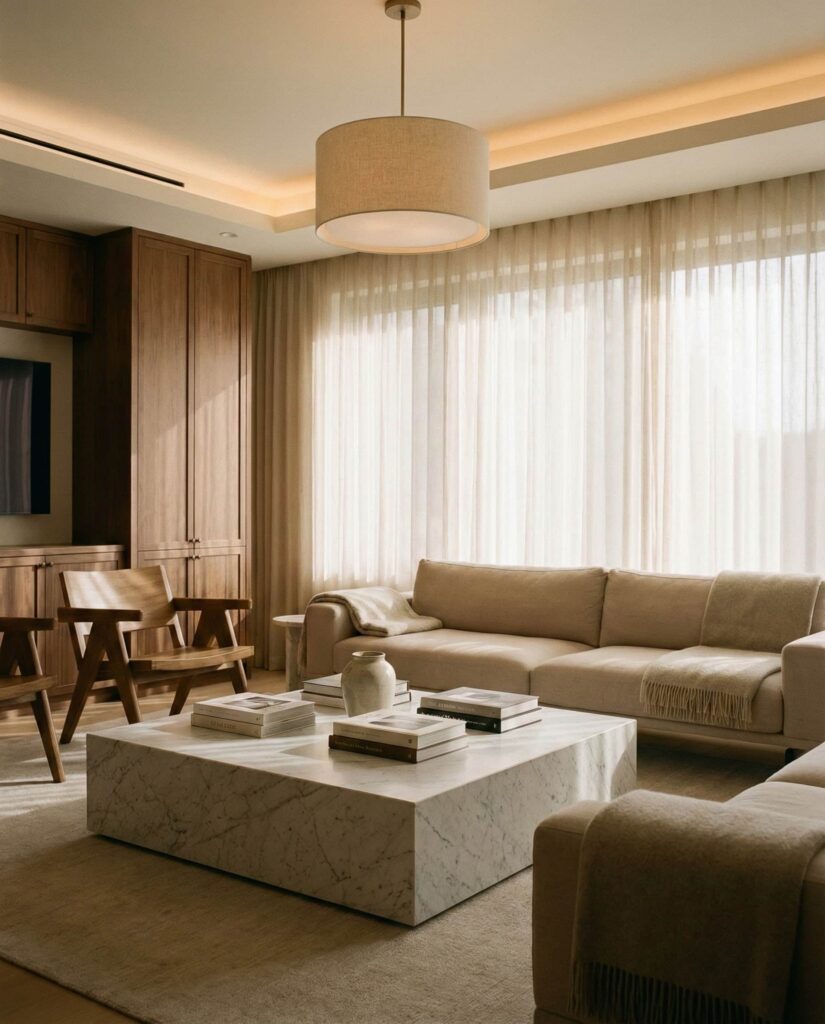 Ideas luxury in 2026 focus less on excess and more on refinement. Designers like those featured in Dezeen highlight high-quality materials, custom furniture, and thoughtful proportions. A marble coffee table, tailored upholstery, or bespoke shelving elevates the space quietly. This type of luxury feels personal and enduring rather than flashy. Soft lighting ceilings and curated Decor enhance the mood without overpowering it. Homeowners often describe these rooms as calm and confident, proving that luxury can feel approachable and livable.