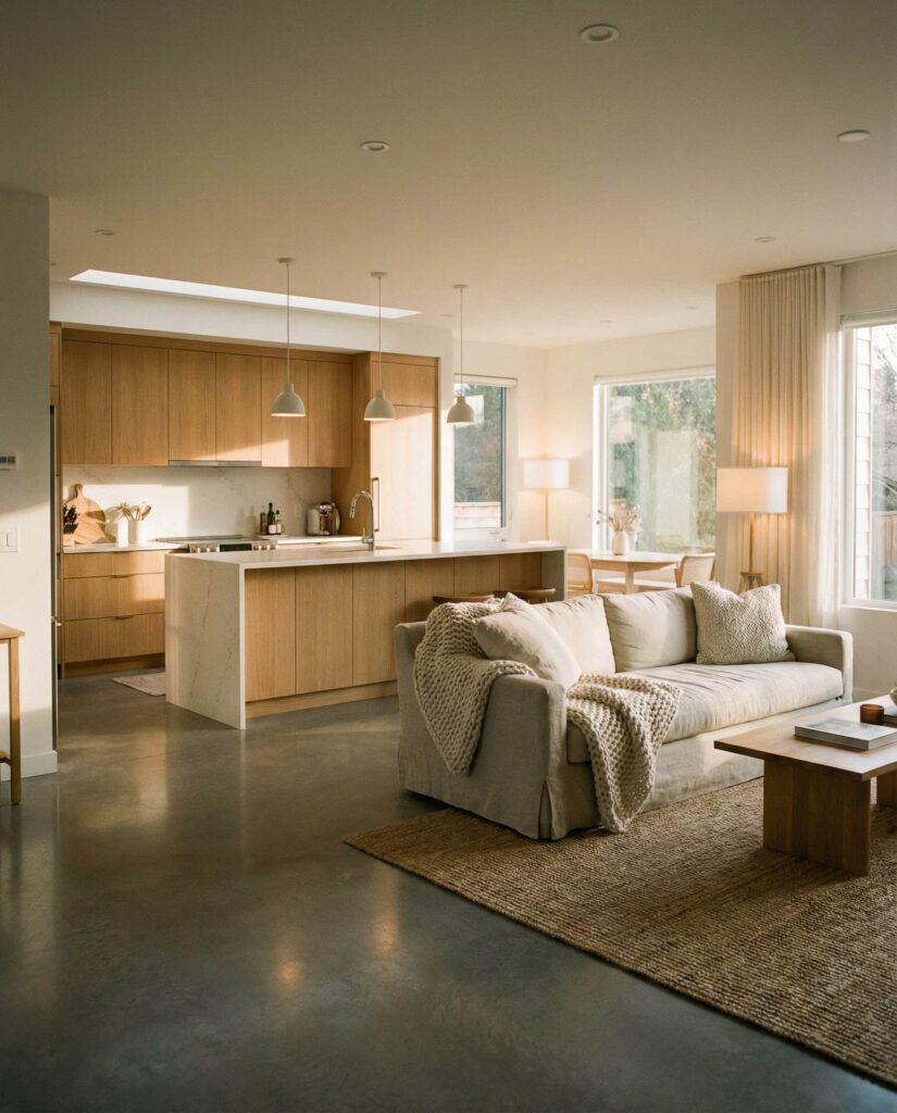An open kitchen that flows into the Living room remains one of the most requested layouts, especially in Modern American homes where flexibility matters. I’ve noticed friends naturally gravitate toward the kitchen during gatherings, even when seating exists elsewhere. Designing the kitchen with living room zones in mind helps cooking feel social rather than isolated. This approach works beautifully in Small living room layouts and Small spaces, where visual openness makes the home feel larger. Clean sightlines, shared flooring, and a subtle Side counter can help define areas without walls. Designers often recommend neutral palettes so the kitchen doesn’t overpower the Sitting room, keeping everything cohesive and relaxed.
