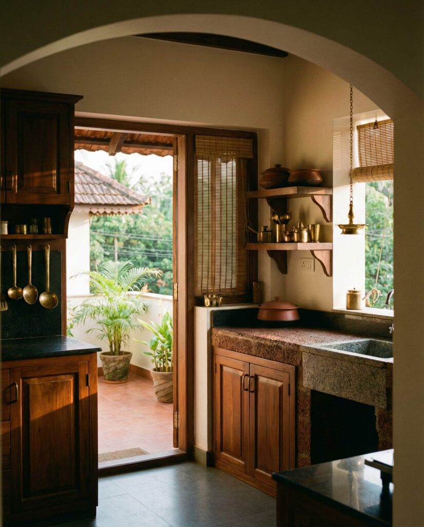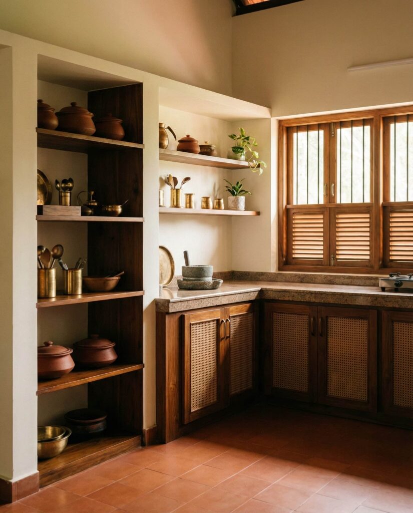 A Kerala open kitchen can be adapted beautifully to compact layouts by emphasizing airflow and light. Natural materials and restrained detailing prevent visual overload in Small spaces. I’ve seen how this style creates calm even in dense neighborhoods. Rooted in kerala style, the design feels breathable and grounded, offering a refreshing alternative to glossy urban kitchens.
