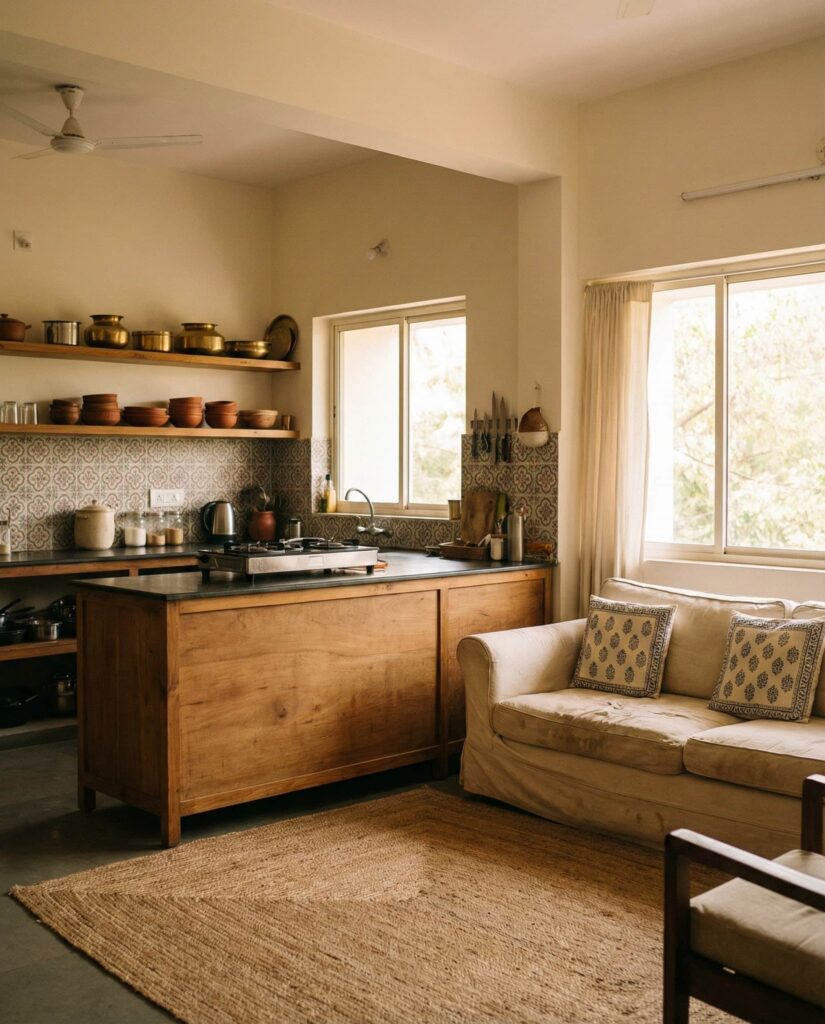 22. Simple Open Kitchen for Everyday Indian-Inspired Living