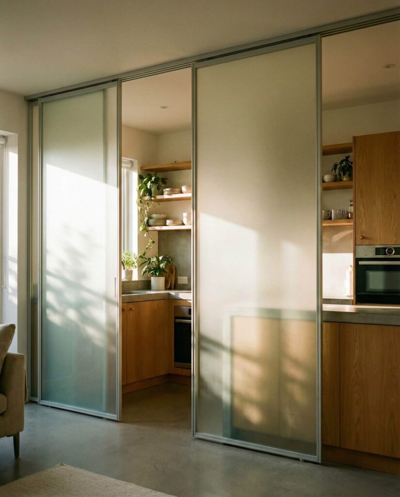 Not everyone wants a fully exposed kitchen, which explains the rise of Half open layouts that allow you To close the space when needed. Sliding glass panels or pivot doors offer flexibility without sacrificing openness. This idea works well in homes where cooking aromas or noise can disrupt a nearby Hall and seating zone. I’ve seen this approach embraced by homeowners who entertain often but still value privacy. It’s a thoughtful compromise that feels practical rather than indecisive.