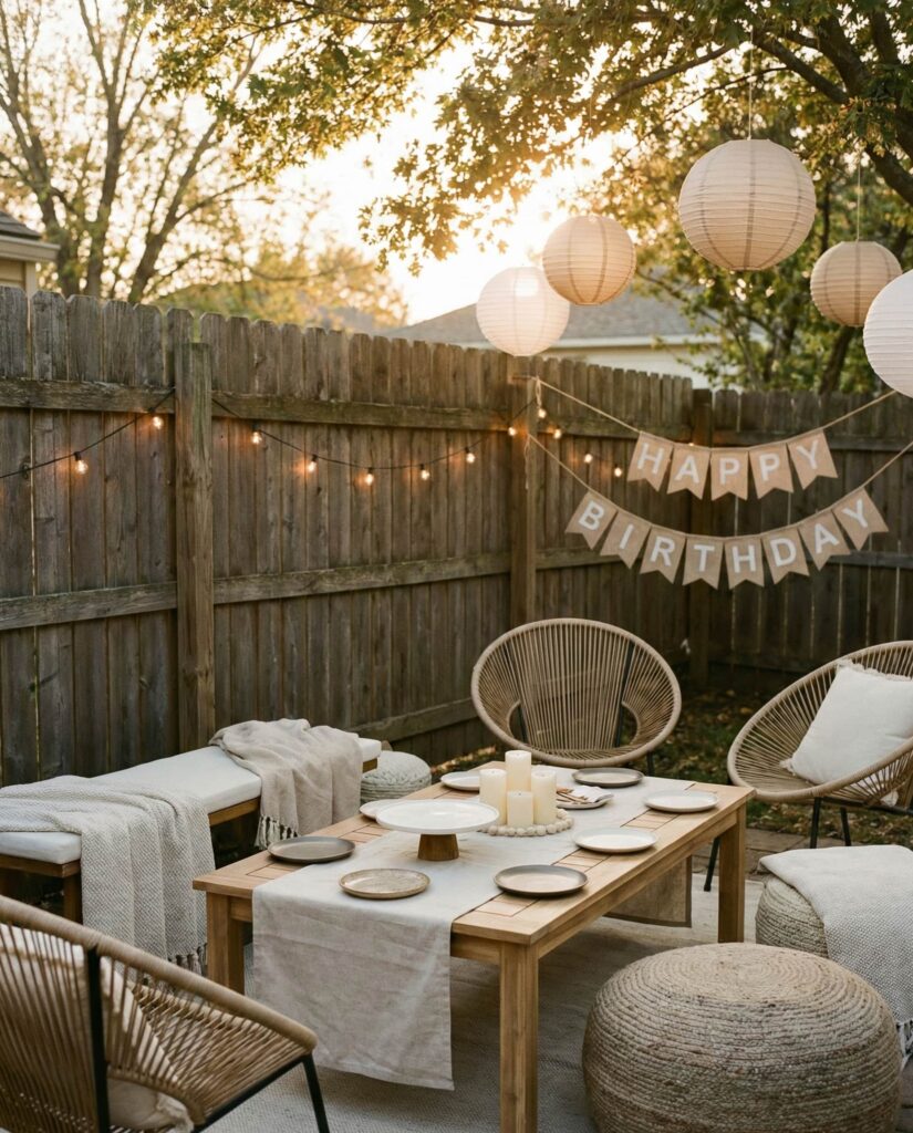 In 2026, homeowners create dedicated corners for birthday moments rather than decorating the entire yard. A flexible backdrop, movable seating, and adaptable lighting allow quick setup for a birthday party without permanent changes. I’ve seen this approach reduce stress while still feeling special. Designers suggest keeping the base design neutral so it works year-round, with accessories swapped as needed.