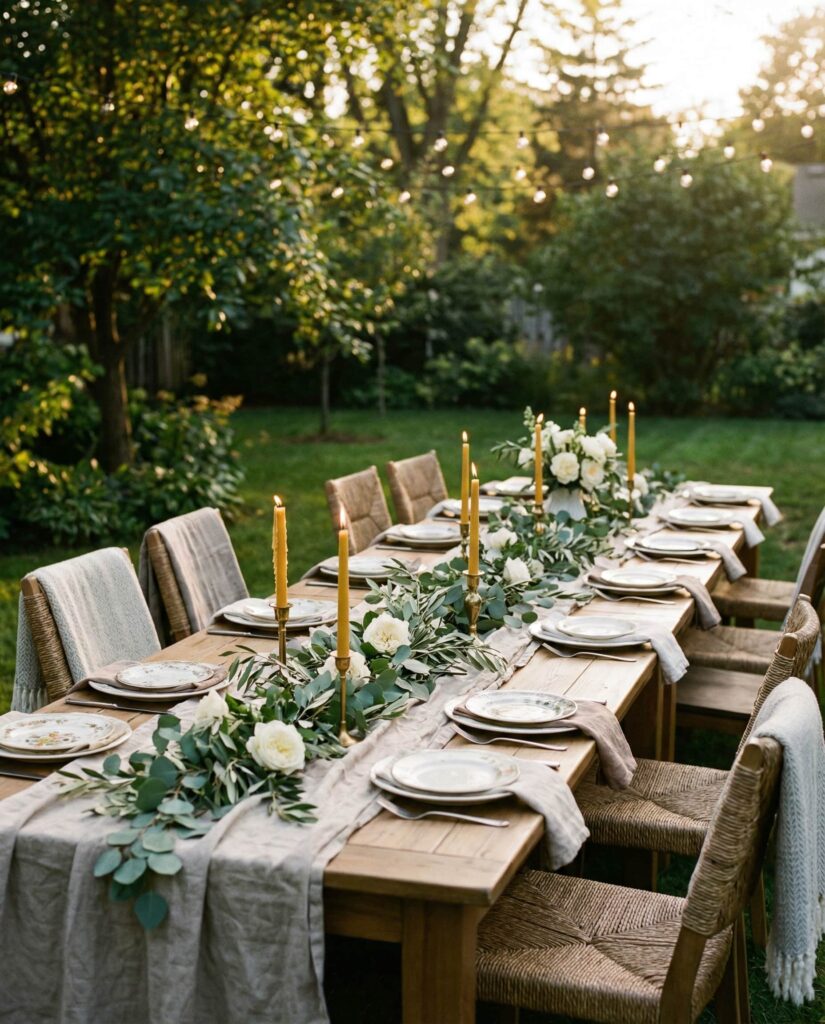 Outdoor Decor Backyard 2026 borrows heavily from wedding styling, even for everyday use. Long tables, linen runners, and soft lighting create an elevated dining experience without formality. I’ve seen couples use this setup for an engagement dinner that felt intimate yet effortless. Neutral palettes paired with seasonal plants keep the look grounded. Decor editors often highlight this idea as a way to make ordinary meals feel intentional. It’s especially appealing to homeowners who love hosting but prefer a relaxed, welcoming tone over rigid design rules.