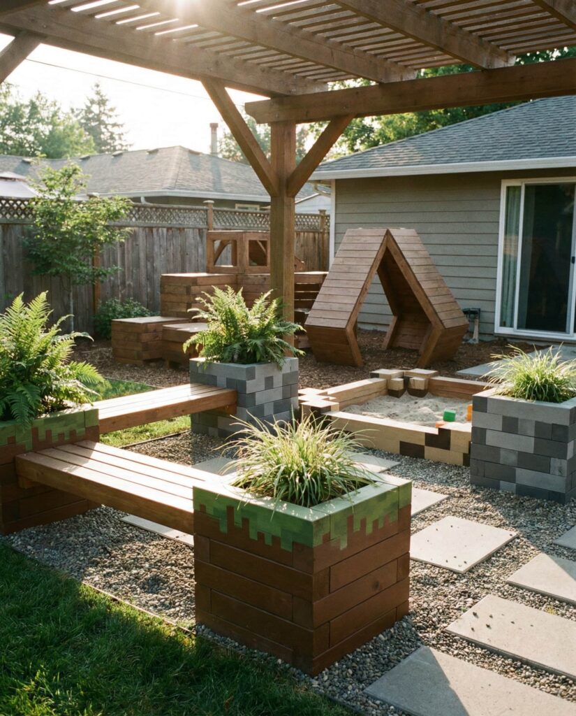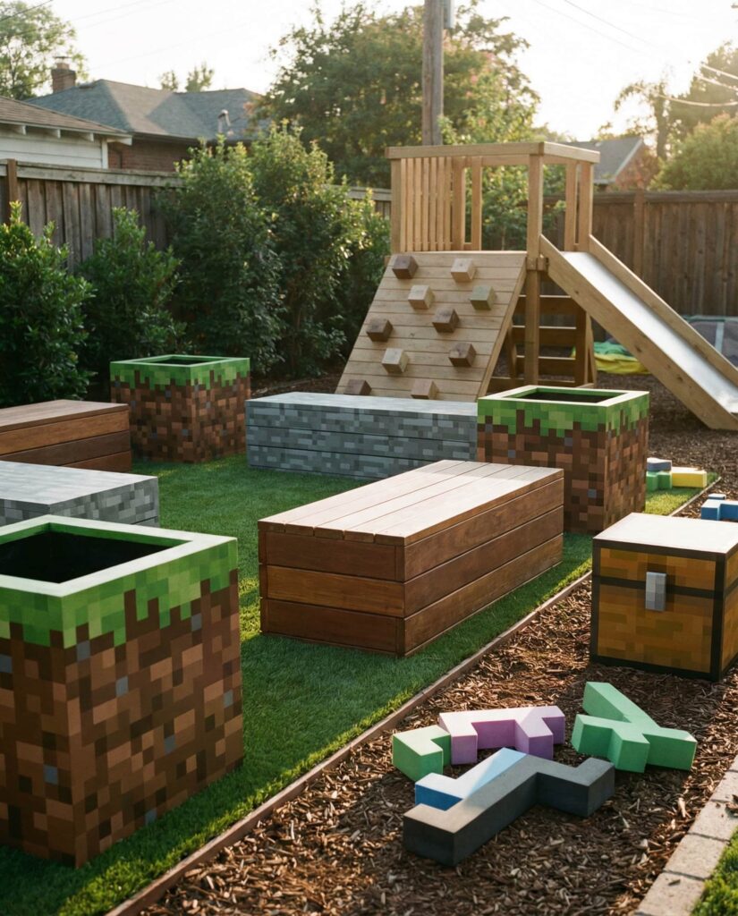 Design in 2026 acknowledges family life, and Minecraft-inspired outdoor decor brings creativity to play areas. Using geometric seating, block-style planters, and bold colors, parents create spaces that feel imaginative without looking childish. I’ve seen this idea work especially well for a kid’s birthday party, blending play with design. The key is moderation—designers suggest hinting at the theme through shapes and layouts rather than literal replicas. It’s a smart way to make the backyard inclusive for all ages.