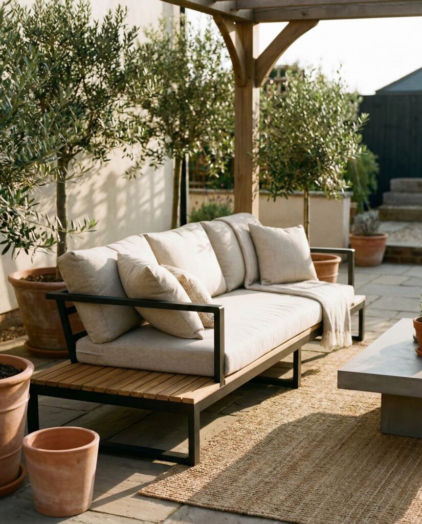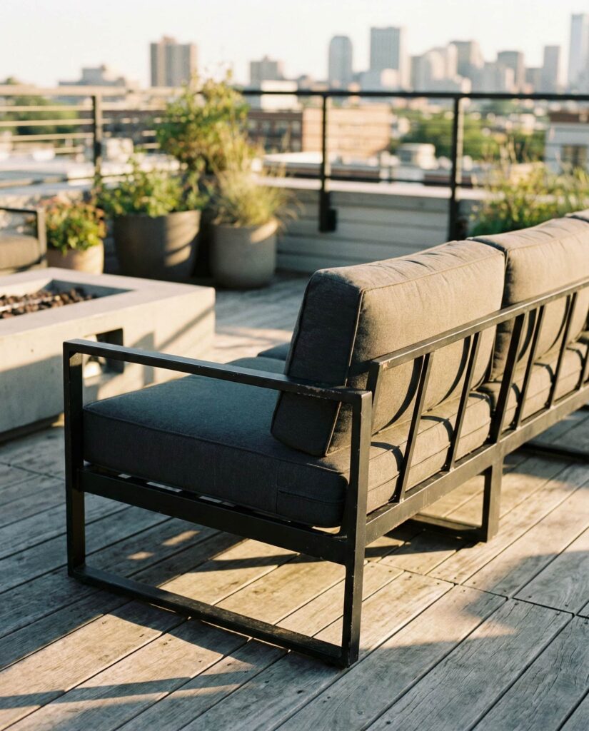 Outdoor sofas built on Black Metal frames bring an industrial edge to exterior spaces. This style works particularly well in urban rooftops or contemporary backyards with clean lines. Slim frames keep the sofa visually light, while deep Cushions ensure comfort. Designers often contrast metal with warm wood decking or greenery to avoid harshness. I’ve seen this look gain traction through features on Dwell, where industrial elements are softened for residential use. These sofas offer durability, low maintenance, and a bold Design statement, appealing to homeowners who want outdoor furniture that feels modern without being fragile.
