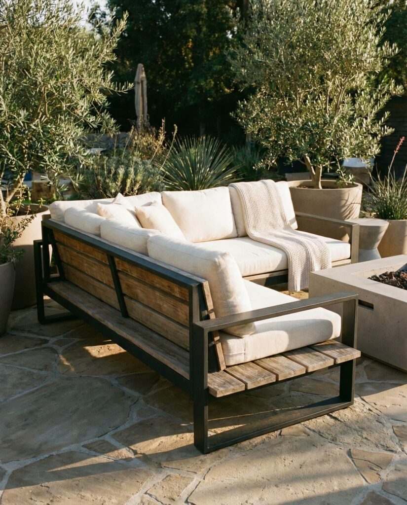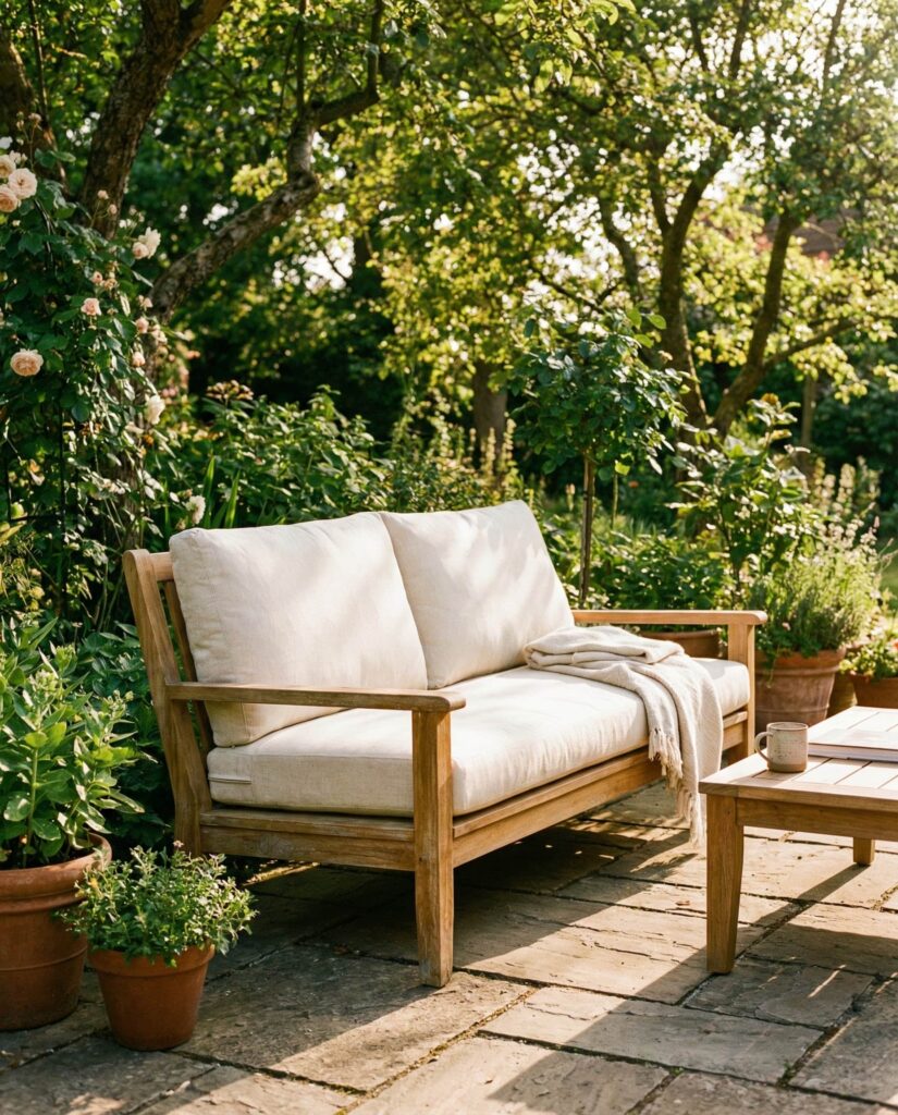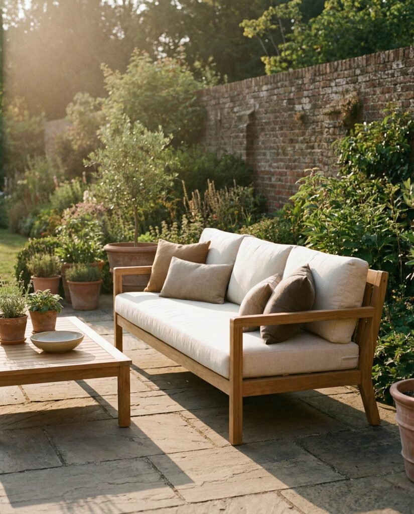Teak remains one of the most trusted materials for outdoor furniture, prized for its weather resistance and rich patina. A teak sofa fits seamlessly into both Modern and traditional decor schemes. I’ve watched teak pieces transform over time, shifting from honey tones to soft silver, adding character rather than wear. These sofas are often part of a coordinated set, paired with a matching Table for cohesive outdoor living. Designers frequently highlight teak’s sustainability when responsibly sourced, a point emphasized by brands featured on Architectural Digest. Comfortable Cushions complete the look, ensuring that beauty never compromises comfort in outdoor seating design.