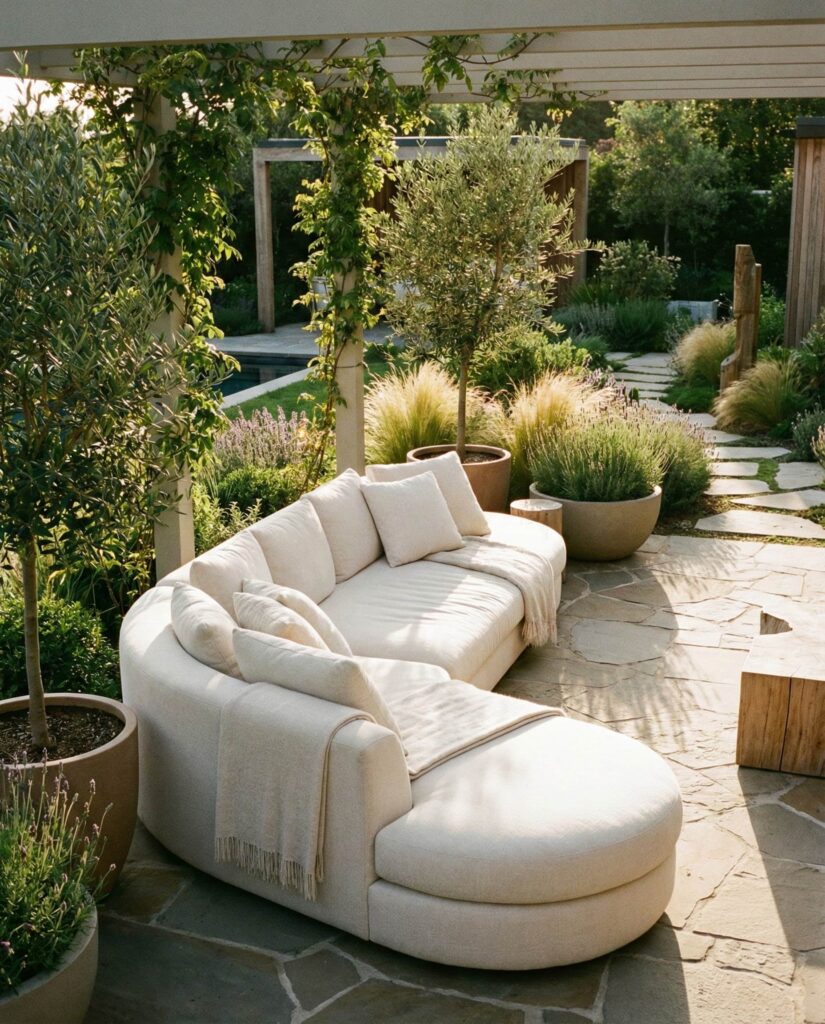 2. Curved Sofas That Soften Outdoor Spaces