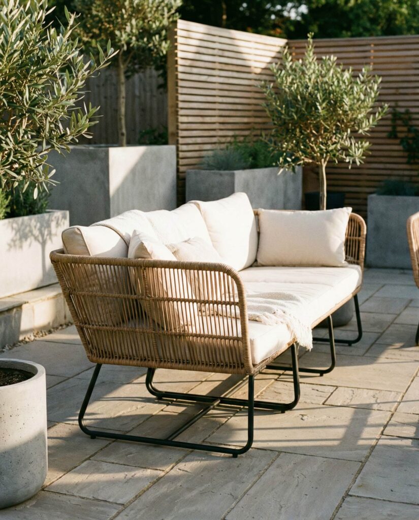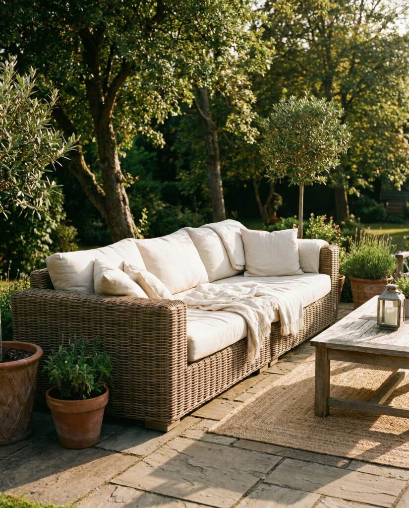 A deep Rattan sofa designed with near Bed proportions blurs the line between seating and lounging. Extra depth allows users to recline comfortably, making it ideal for relaxed afternoons outdoors. Designers often recommend this style for poolside or shaded patios where lingering is encouraged. Thick Cushions enhance comfort without overwhelming the natural texture. I’ve seen this concept discussed on Elle Decor as part of the trend toward slower outdoor living. It’s a reminder that outdoor seating doesn’t need to be upright to be refined, redefining comfort in outdoor furniture design.