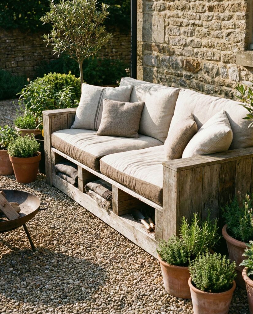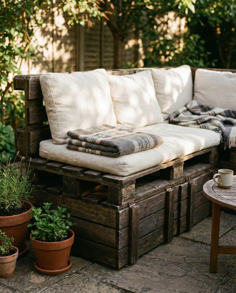 The Pallet sofa remains popular, but newer versions emphasize integrated Storage. This Rustic solution works especially well for small patios where every inch matters. Lift-up seats or hidden compartments store throws, outdoor games, or extra Cushions. I’ve seen this idea succeed in urban patios where clutter can overwhelm the space. Built from reclaimed wood, pallet sofas appeal to eco-conscious homeowners while keeping costs manageable. Designers often recommend sketching a top view layout to ensure the sofa aligns with walkways and nearby Table placement. The charm lies in practicality: relaxed, informal seating that supports everyday outdoor living. As featured on design blogs like Remodelista, pallet sofas prove that smart outdoor furniture doesn’t have to feel temporary or improvised.