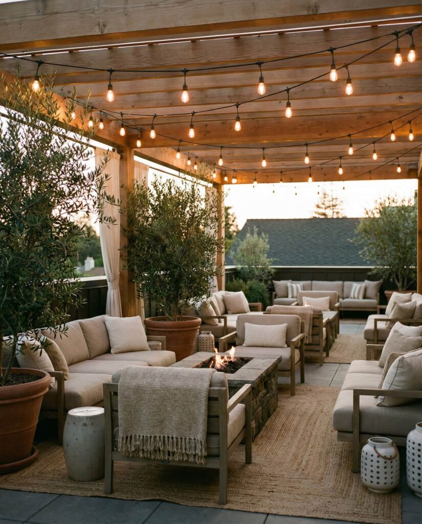 Many homeowners now design a patio the way boutique hotels design lounges, using string lights to hang overhead for atmosphere rather than brightness. I noticed this trend while traveling and later recreated it at home with surprising success. Publications like Hospitality Design often discuss how ambient lighting drives comfort. Translating that approach to residential patios results in relaxed seating areas that feel intentional and upscale without being formal.