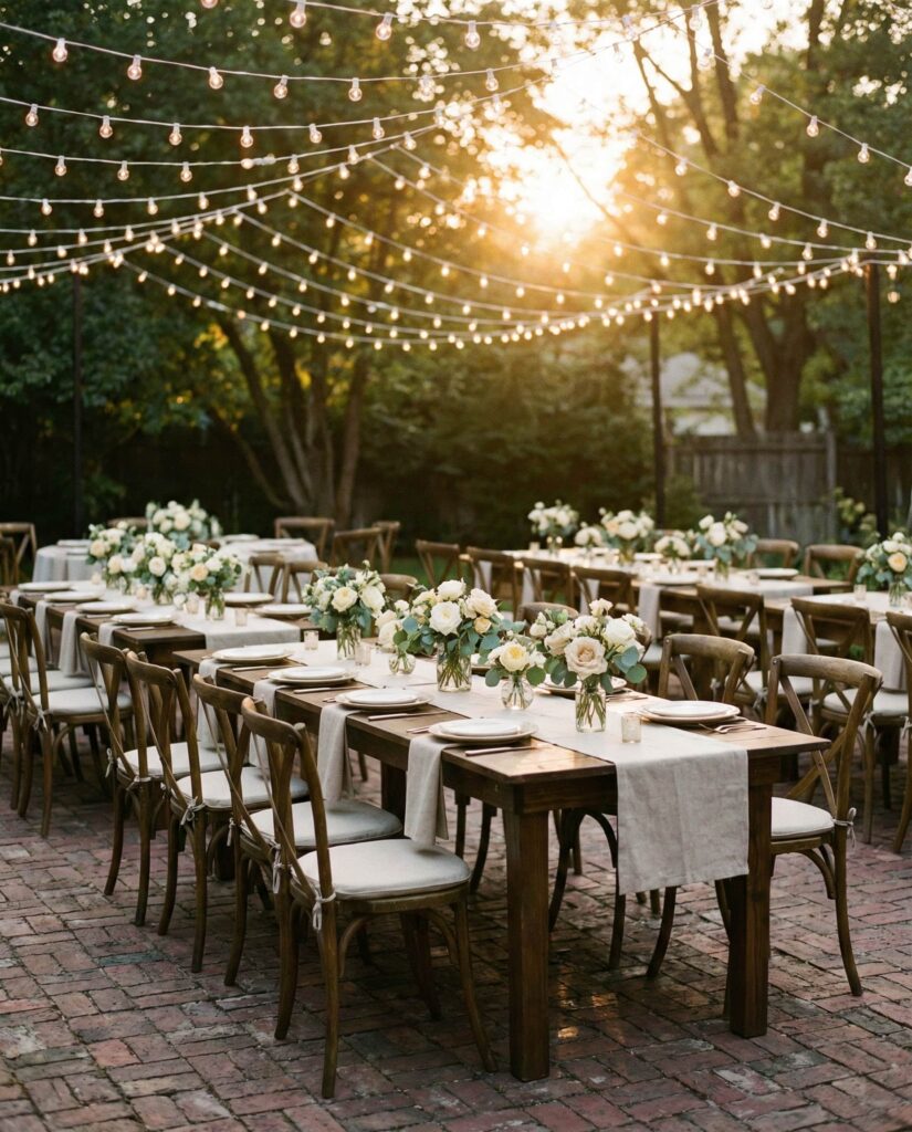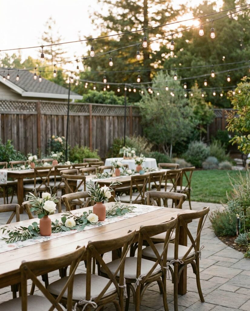 3. Backyard Wedding Ambiance with Soft String Lighting