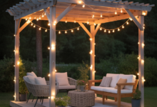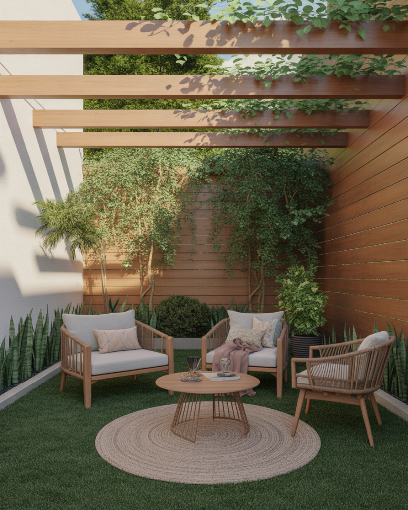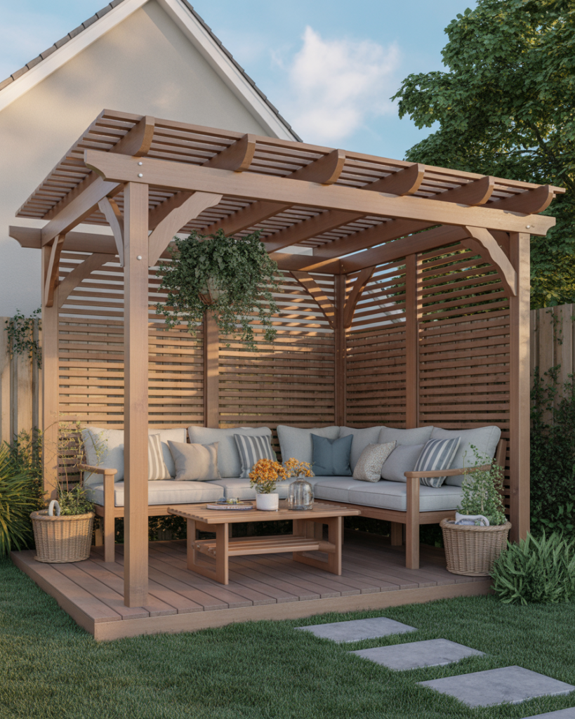 A corner pergola makes underused patio zones feel intentional and cozy, especially in a backyard or townhouse layout. Designers often call it a “shade anchor,” and I once helped a friend build one that turned an awkward space into her favorite coffee spot. It’s ideal for staying stylish even on a budget, adding structure without redesigning the whole yard.
