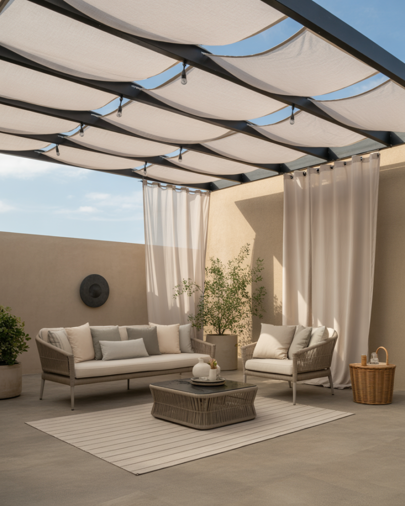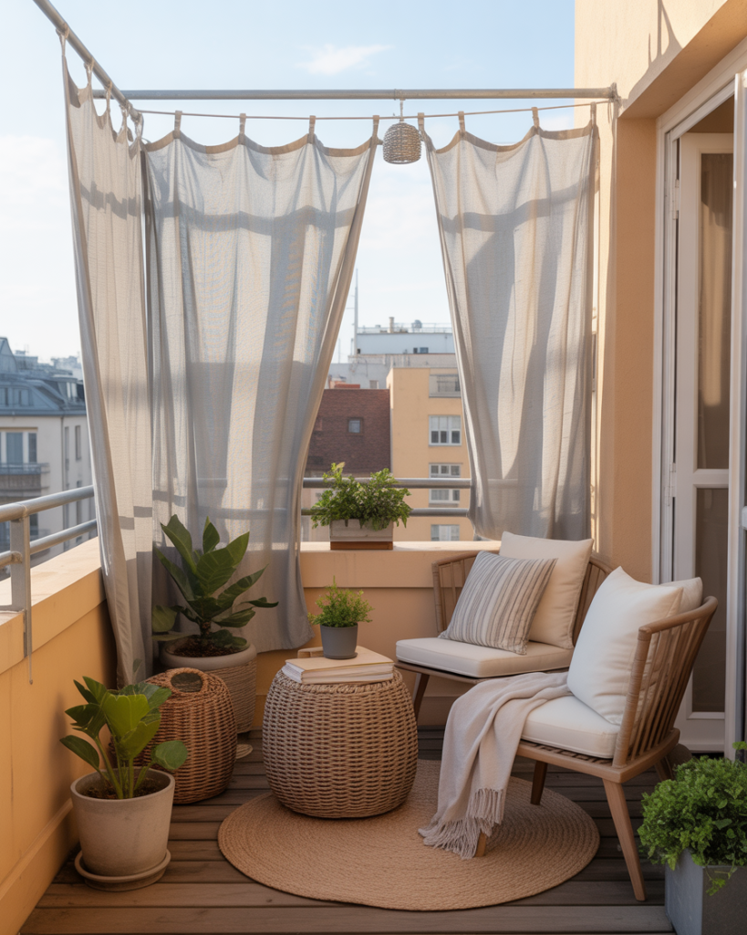 Installing diy outdoor curtains is an easy, budget-friendly solution that softens harsh light and adds movement. These outdoor curtains work beautifully for an apartment, rooftop, or corner balcony, and when I hung my first set, I was surprised by how naturally they framed the space. Ideal for windy areas, they offer privacy and calm without breaking a budget.