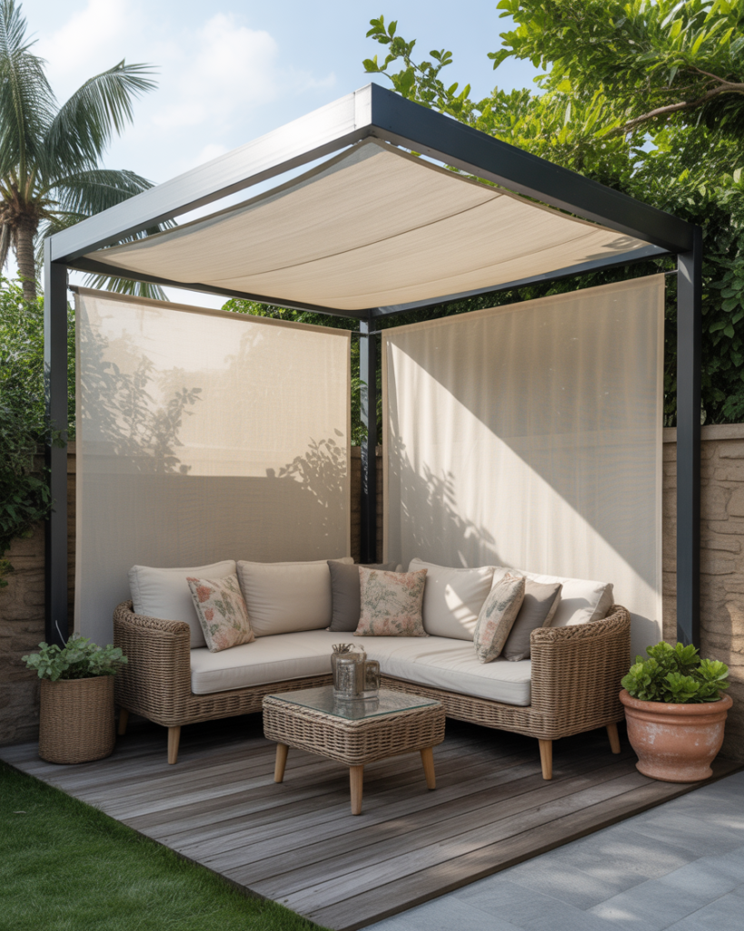 Using retractable panels on a pergola is a smart way to control sun exposure while staying affordable and working on a budget. I once watched a neighbor transform a hot west facing patio into a breezy lounge simply by adding sliding fabric sections. This idea suits a backyard, side patio, or rental where flexibility matters and structure can’t be permanent.