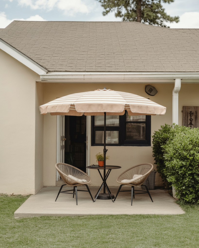 A portable, inexpensive umbrella is perfect for renters seeking cheap outdoor shade that adapts to shifting sun. My sister added one to her concrete front patio, and it instantly became the most comfortable spot for afternoon breaks. Durable, round, and movable, these umbrellas offer convenience without commitment—great for those who rearrange their patios often.