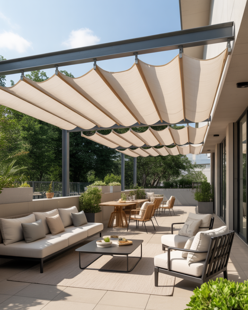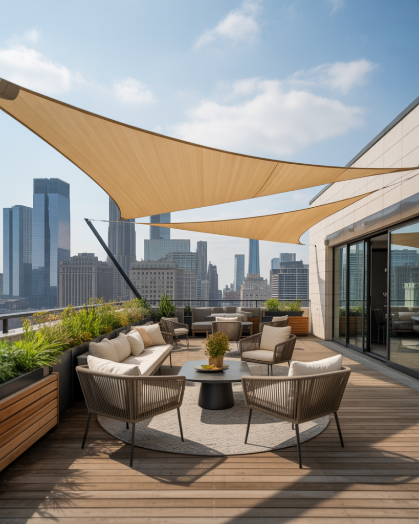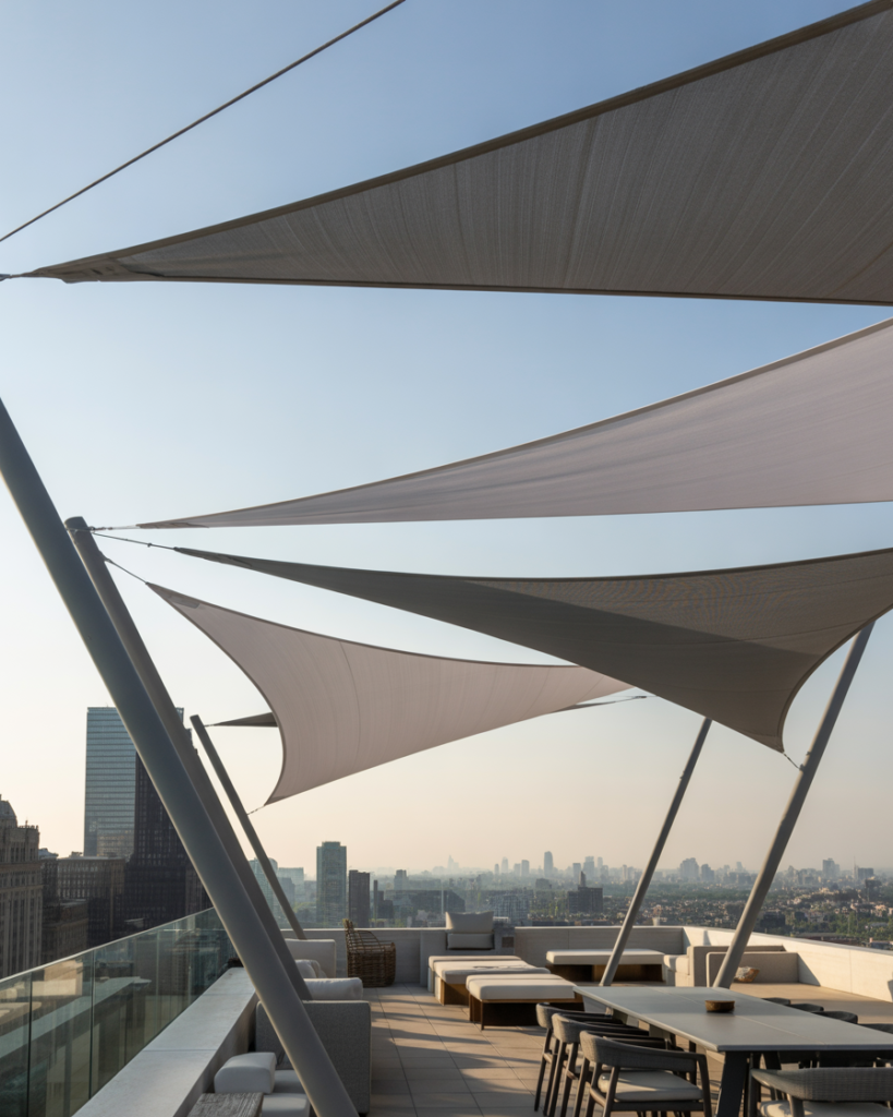 Tensioned shade sails are ideal for windy areas because they stay secure while offering modern, affordable coverage. They’re especially helpful for on a budget sun protection on rooftop or outdoor terraces. I once saw them used at a community event, and despite gusts, the space stayed cool and elegant—proof they work both practically and visually.