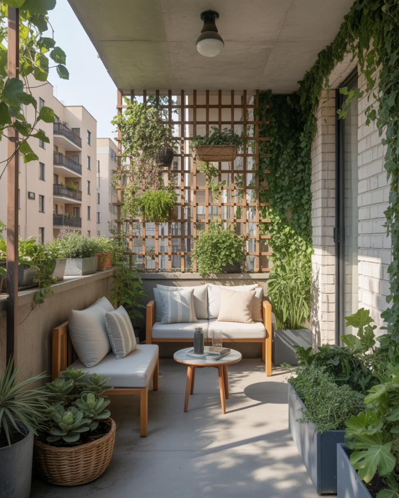 Adding two perpendicular shade walls creates a sheltered side nook ideal for reading or morning coffee. These walls work well in townhouse patios or narrow apartment balconies and can be built on a budget using lightweight panels. A coworker installed them to tame sun on her west facing space, and the spot instantly felt cozier—almost like an outdoor room.