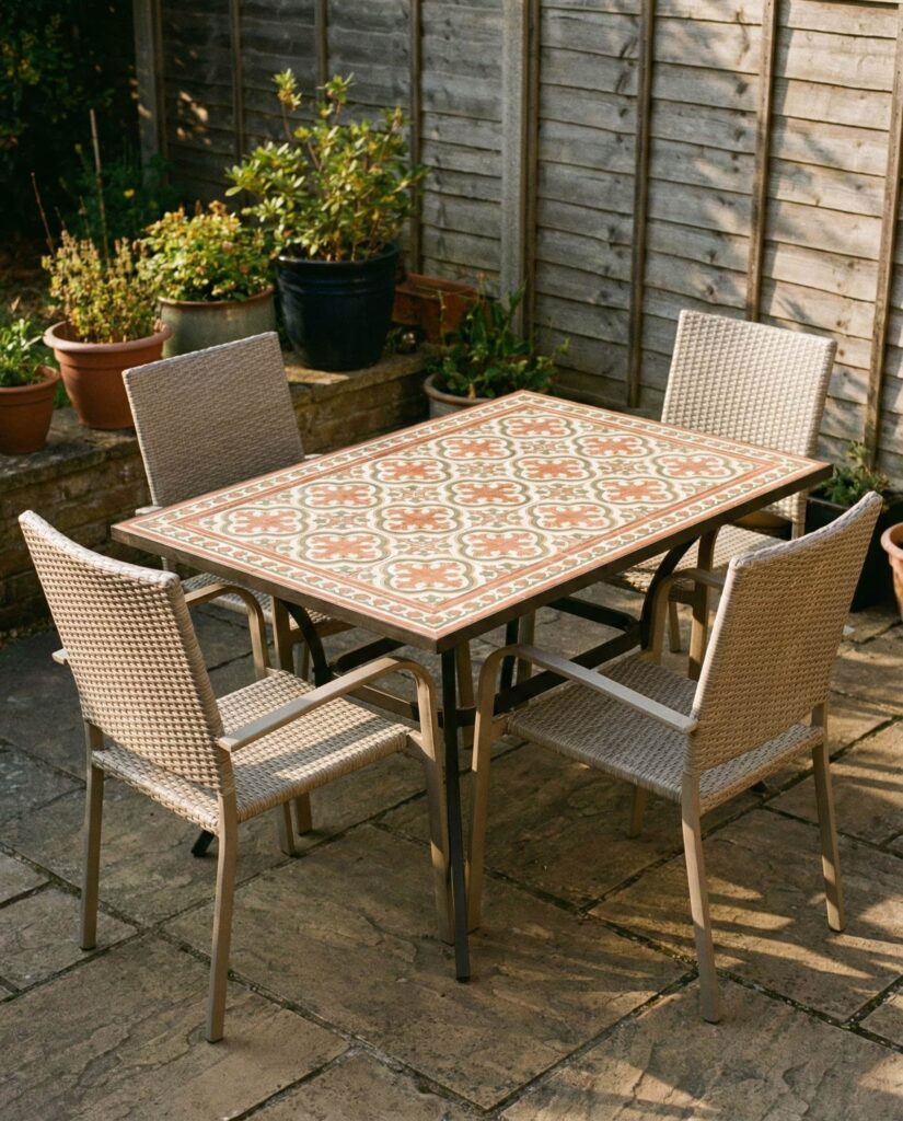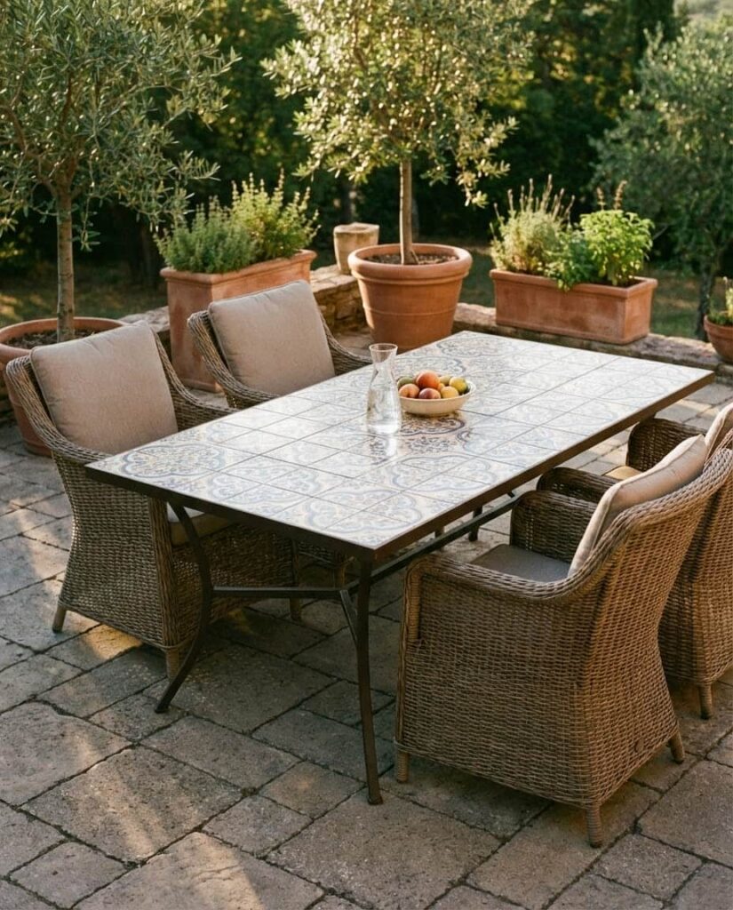 Tile Top replacement ideas are a practical way to extend the life of aging patio tables while introducing fresh decor. I’ve seen homeowners transform dated metal frames simply by adding patterned tiles, instantly updating the design without buying new furniture. This approach fits well into Diy culture and allows flexibility in color and texture. In patio tables ideas outdoor, tile tops work especially well with neutral chairs, letting the surface act as the visual focus. Designers from sites like Better Homes & Gardens often note that tile surfaces are easy to maintain and ideal for everyday Outdoor use. Subtle decorating ideas, such as simple center bowls or linen accents, keep the setting balanced rather than busy.