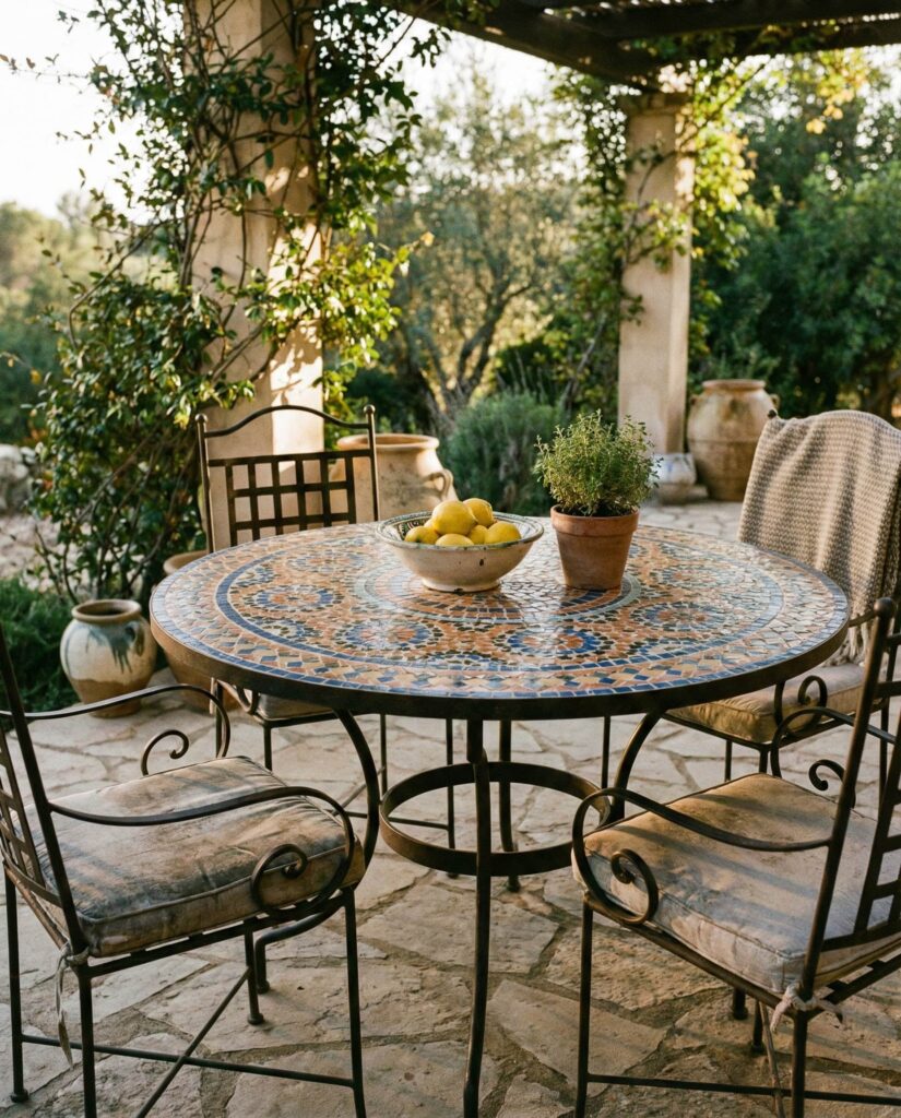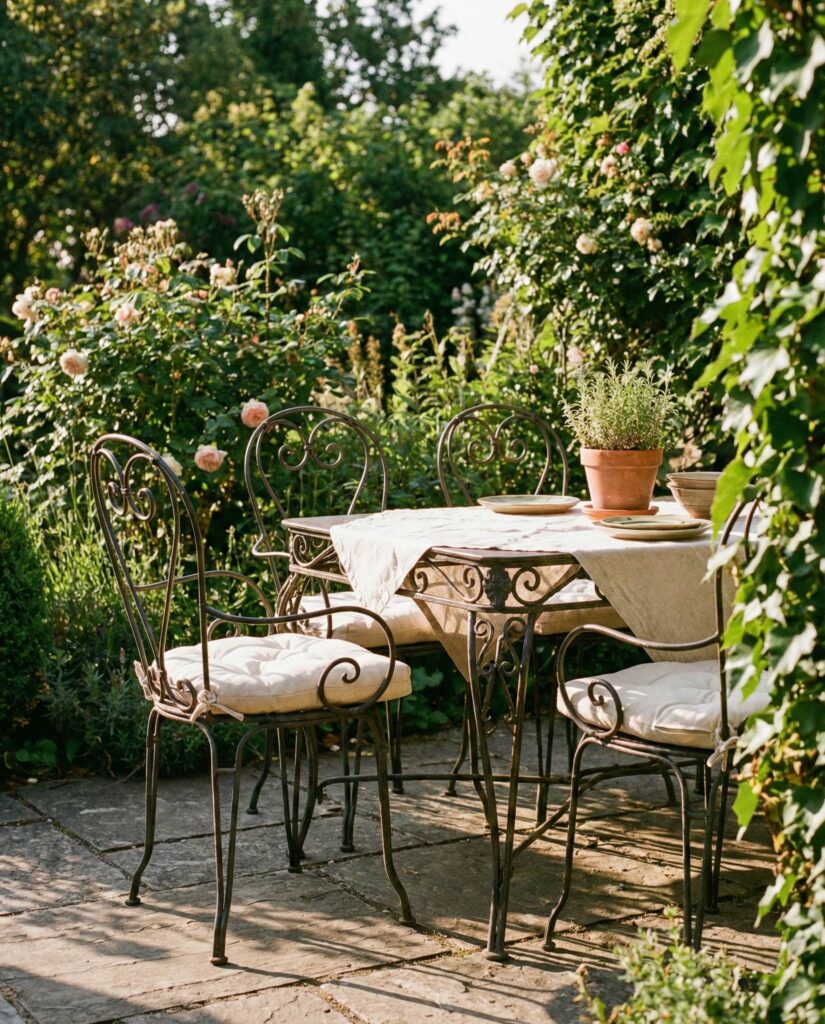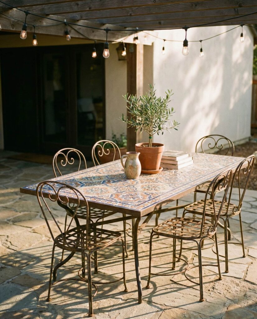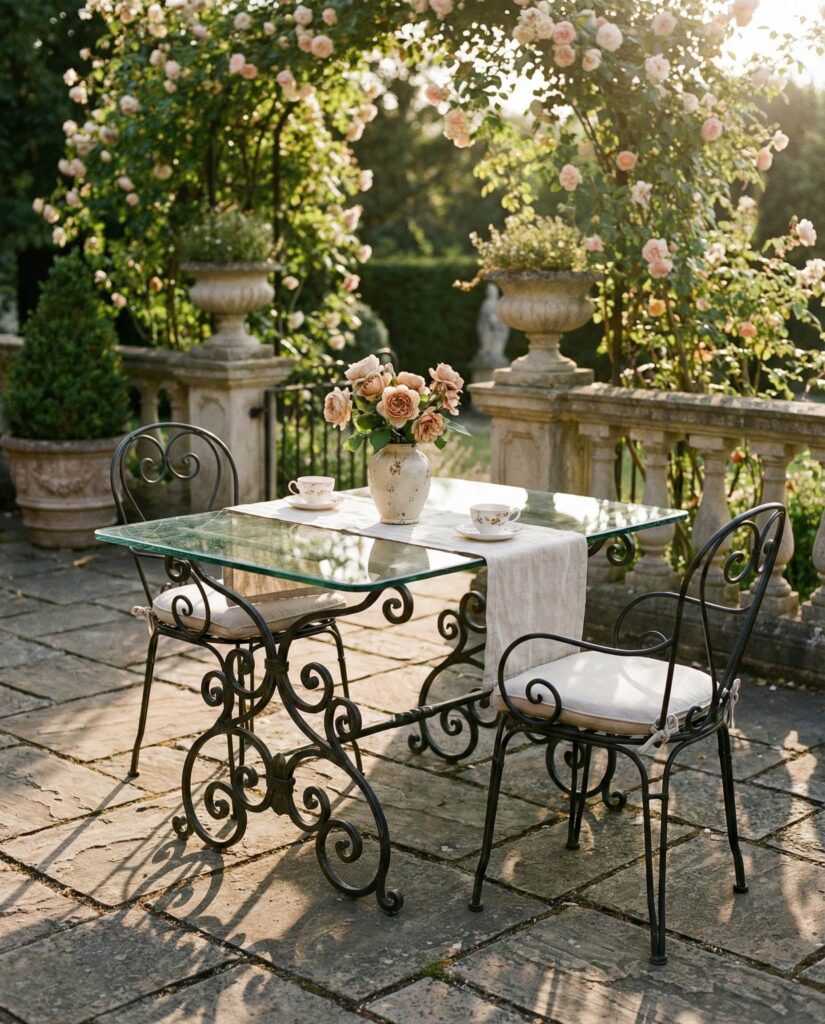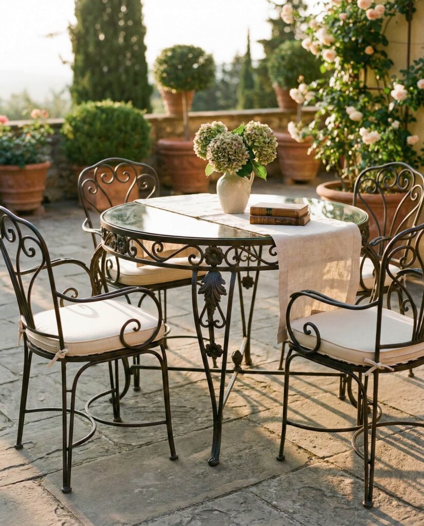 Wrought iron patio tables bring heritage and craftsmanship into modern Outdoor living. I grew up seeing these tables on porches, and today they feel refreshed when styled simply. In patio tables ideas outdoor, iron works best with neutral decor and soft cushions on chairs. Many decor ideas suggest pairing iron with greenery to balance its weight. This style fits traditional homes while adapting easily to updated design trends.