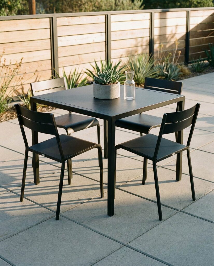 A Black Metal bistro-style patio tables solution is perfect for balconies and compact yards where space is limited. I’ve noticed these tables are often underestimated, yet they deliver strong design impact with minimal footprint. In patio tables ideas outdoor, bistro tables pair well with slim chairs and understated decor ideas, making the area feel intentional rather than crowded. Their durability suits frequent Outdoor use, while the dark finish anchors lighter decorations like cushions or planters. Many designers highlight black metal as a timeless base that adapts easily to seasonal styling and evolving setting ideas.