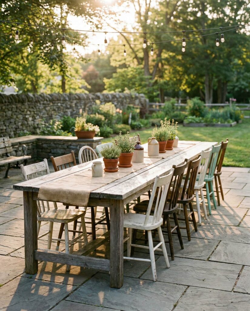7. Long Farmhouse Tables for Social Outdoor Dining