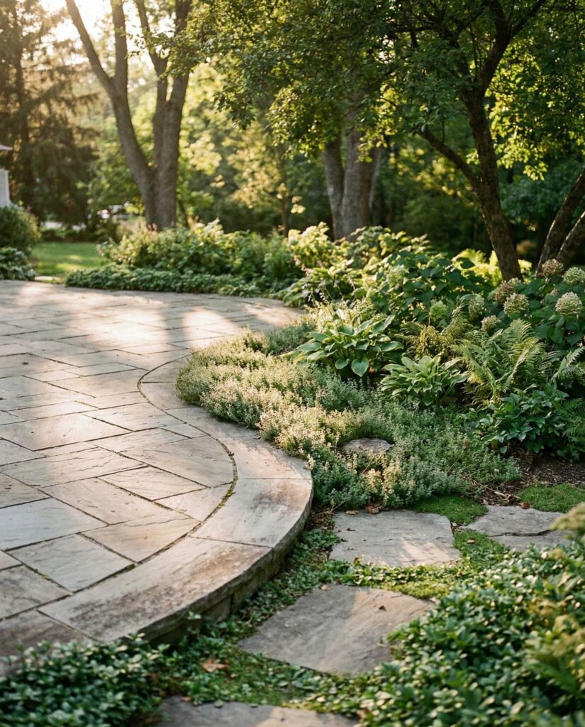 A second take on Curved layouts focuses on blending patios directly into planting beds. These design ideas are ideal for gardeners who want their Outdoor spaces to feel cohesive rather than segmented. I’ve seen this style praised on Gardenista for its ability to blur boundaries between hardscape and landscape. The curve guides movement gently, making the patio feel like part of the garden rather than an addition.