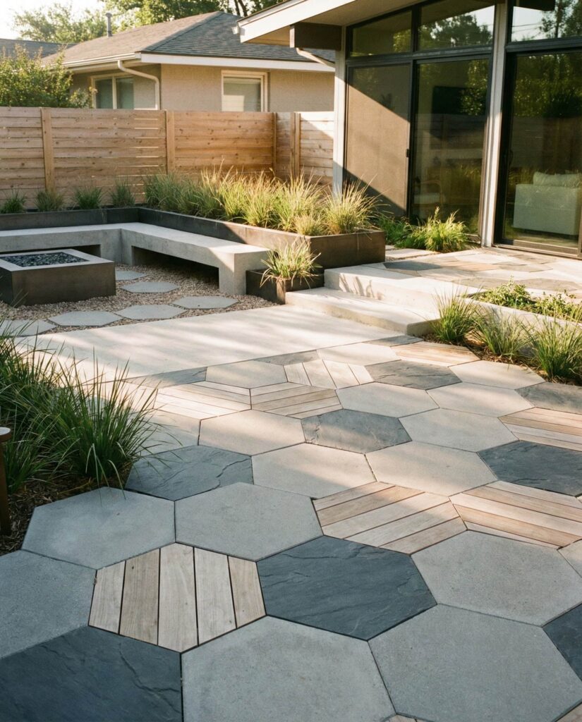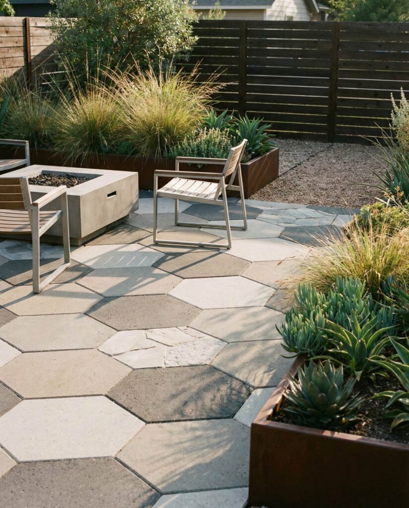 The rise of Hexagon pavers reflects a broader interest in geometric expression within Outdoor spaces. Unlike traditional grids, hexagonal layouts introduce movement and subtle complexity without overwhelming the eye. These design ideas often appear in modern landscape portfolios where Mixed materials play a supporting role, such as concrete paired with stone. I’ve seen homeowners choose this style for ideas next to deck installations, where the contrast between linear decking and angular pavers feels intentional. Publications like Dezeen highlight hexagon forms for their balance of novelty and order, making them ideal for homeowners seeking something fresh yet livable.