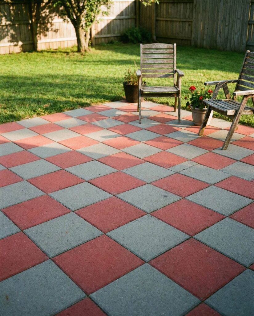 A Checkered layout using Red and gray pavers introduces graphic contrast without feeling busy. This style often surprises homeowners who expect bold patterns to overwhelm, yet in reality, it brings energy to flat Outdoor spaces. I’ve seen this approach used effectively near Above ground pool areas, where visual definition helps organize activity zones. Design blogs like Remodelista note that strong patterns work best when surrounding elements remain simple. For homeowners craving personality, this is one of those design ideas that delivers impact with discipline.