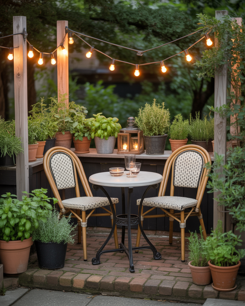 Creating a compact dining nook with café charm works well for small yards using Ideas, a budget, and thoughtful layout touches. A tiny bistro table, string lights, and a few potted herbs turn any space into a relaxed outdoor café. I once saw a couple recreate their favorite brunch spot in under 20 square feet—proof that great outdoor designs don’t require big spaces or big spending.