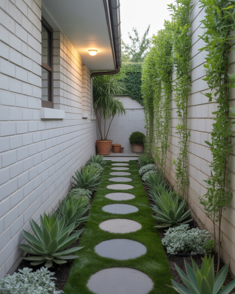 Transforming a thin side yard into a walkway oasis relies on Ideas simple features like stepping stones, grass strips, and vertical planters. These designs layout tricks help long, narrow spaces feel intentional instead of forgotten. I once saw a homeowner turn a dull utility path into a relaxing mini-garden with soft lighting and fragrant plants.