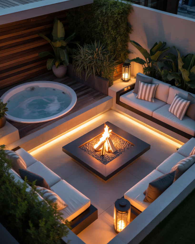 Some homeowners crave a luxurious mix of warmth and water—a tiny hot tub paired with a mini fire pit. With smart plans and Ideas layout fire pits, the combo works even in small yards, offering nighttime comfort and privacy. A friend’s micro spa area became her weekend sanctuary, proving how well these elements pair together.