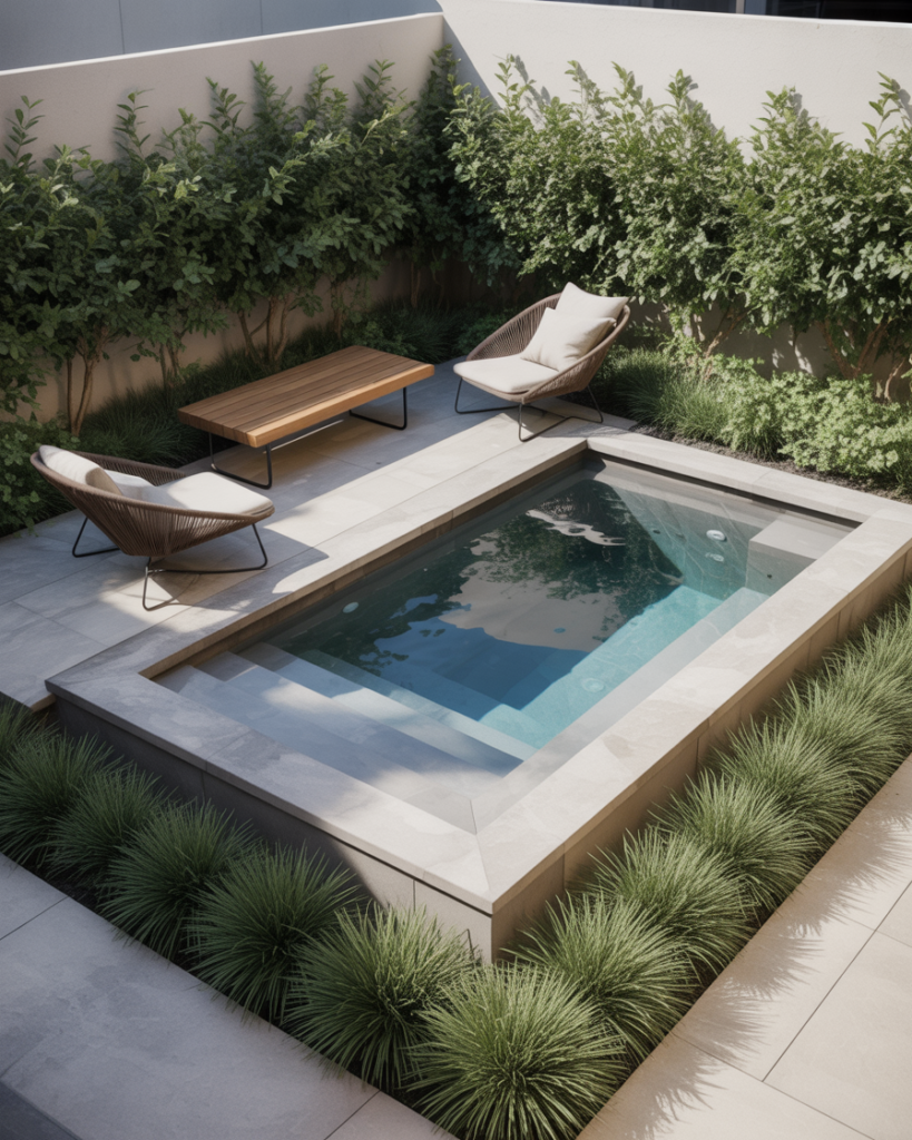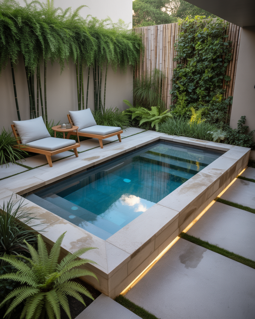 A tiny retreat with pool features is possible even on a budget, thanks to modern plunge pool options highlighted by Studio McGee. These small water elements give the yard a relaxing atmosphere while keeping plans efficient. A friend once told me their mini pool became the heart of summer gatherings, showing that even narrow outdoor areas can deliver that vacation-like feeling.