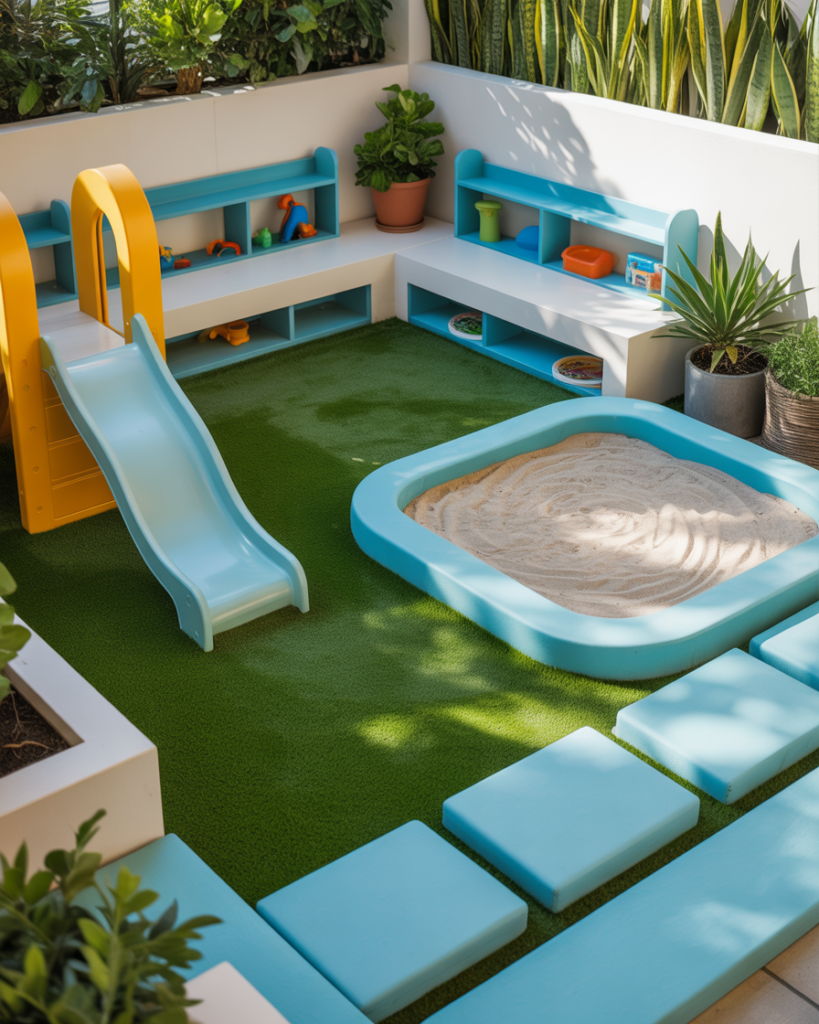 Families often need a Kids play area that still keeps the yard balanced. Using a budget simple garden ideas, soft grass, and compact play pieces, parents can build a cozy zone where kids stay active without overwhelming the space. I once helped design a small slide-sandbox combo that fit into a corner, looking safe, cute, and remarkably practical for tight backyards.