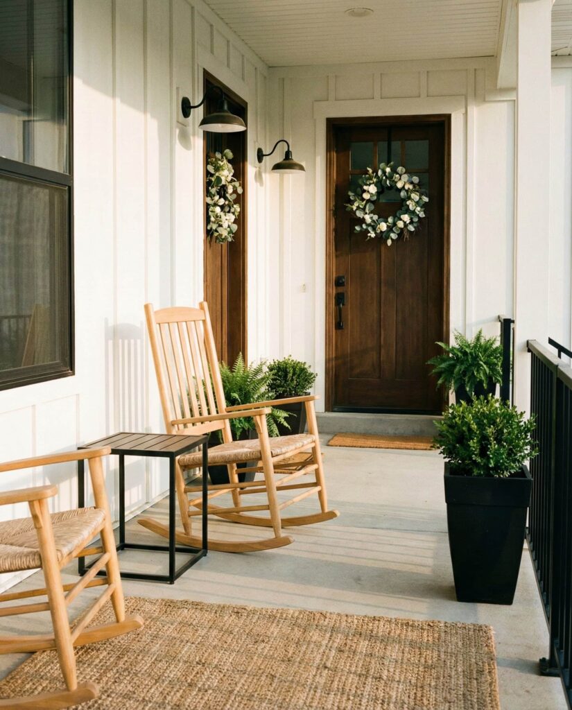 12. Modern Farmhouse Porch with Clean Contrast