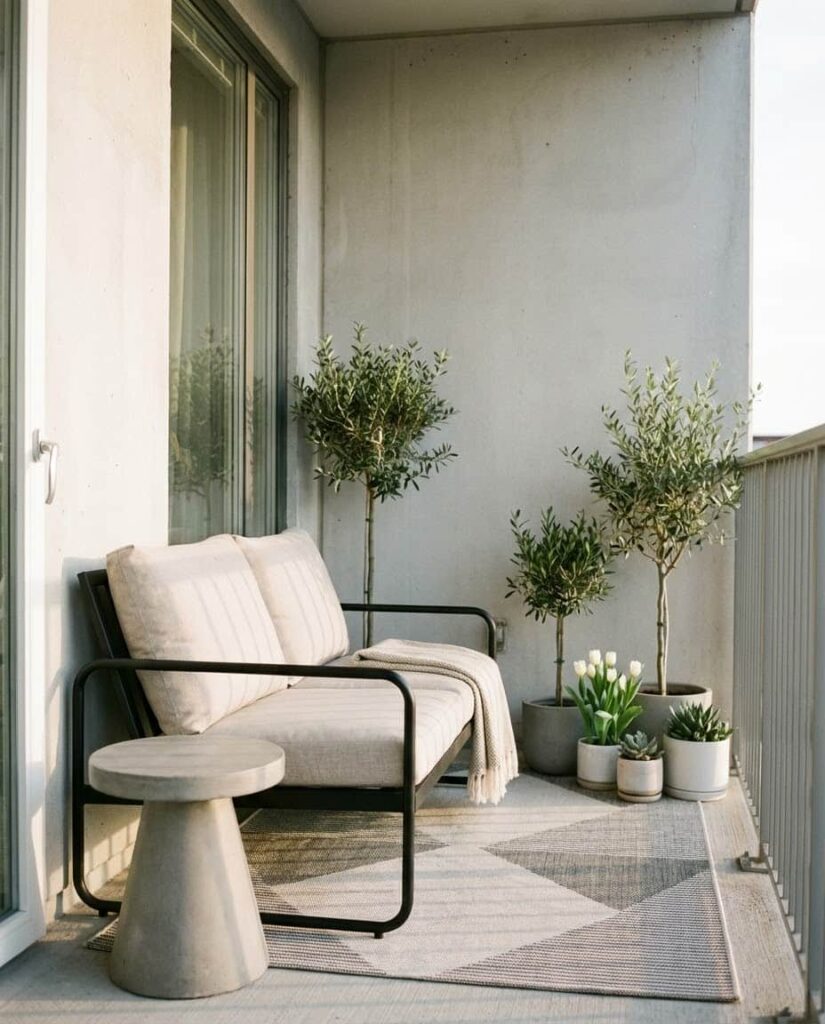 21. Soft Modern Porch with Apartment-Friendly Scale