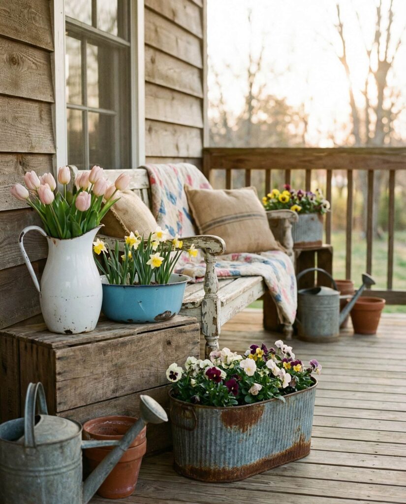5. Vintage Porch Accents with Seasonal Flexibility